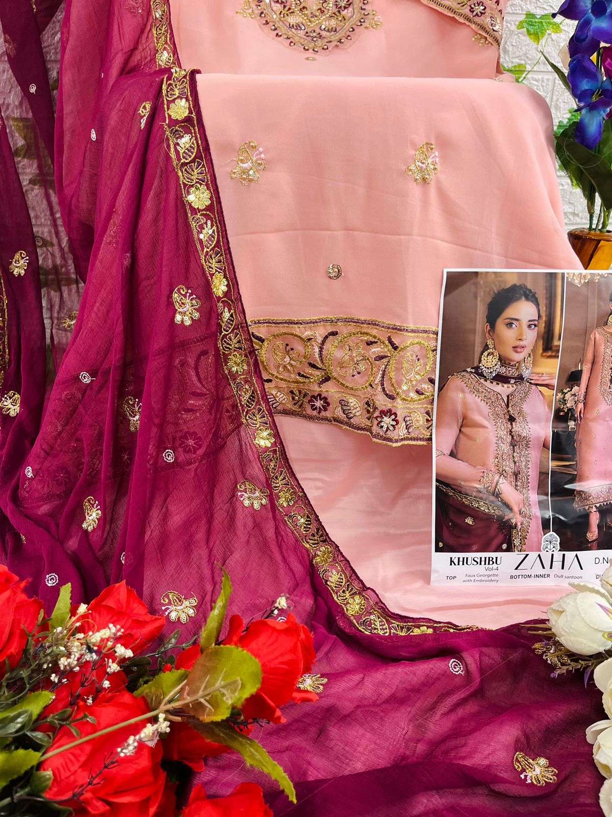 Dear ZAHA 👇🏻Fabric details 👇🏻 👗 Top : GEORGETTE WITH HEAVY EMBROIDERED 👖Bottom :SANTOON 🏳️🌈Dupatta : NAZMIN WITH HEAVY EMBROIDERED 🏳️⚧️INNER :- SANTOON 🚚Dispatch reday 🚚 Regards |