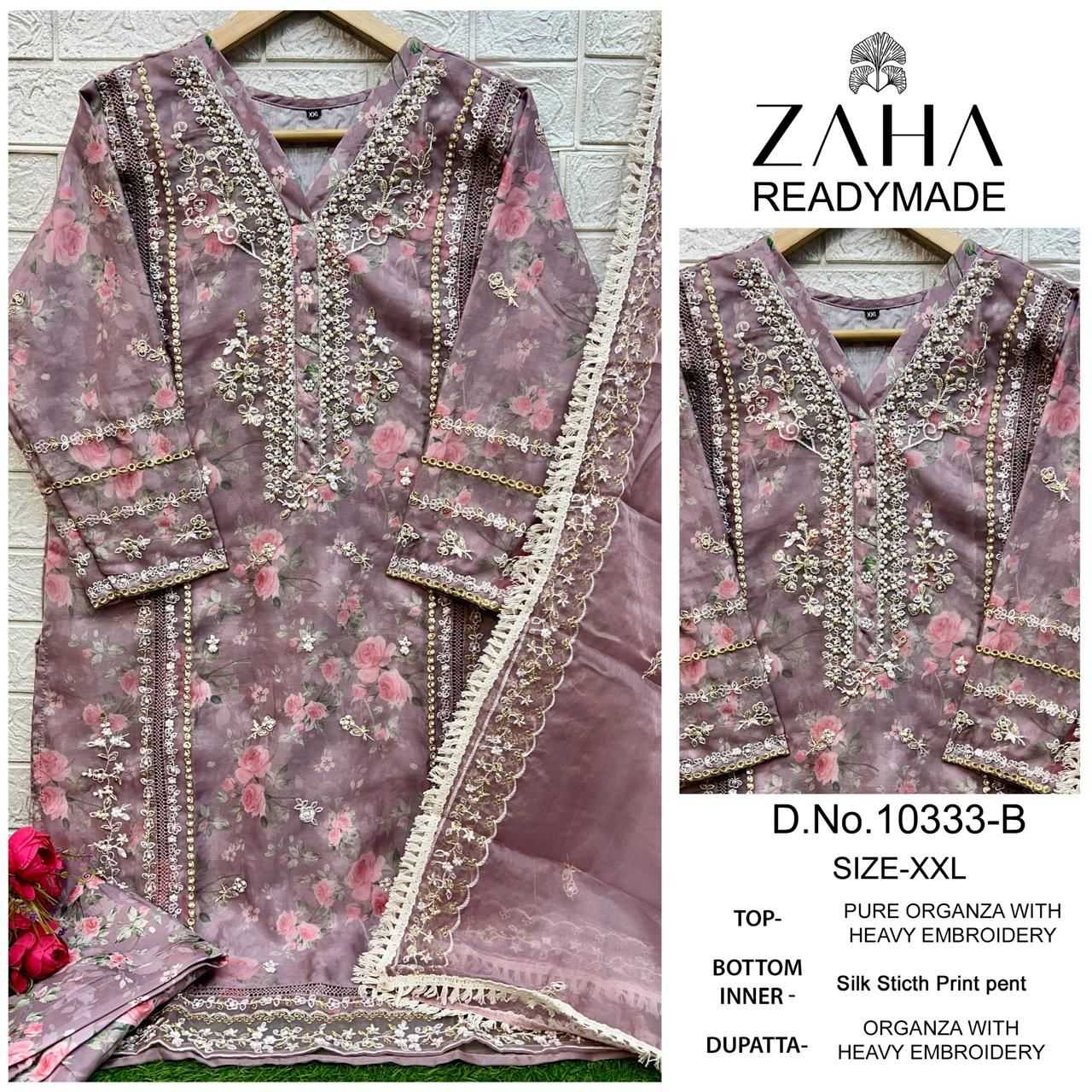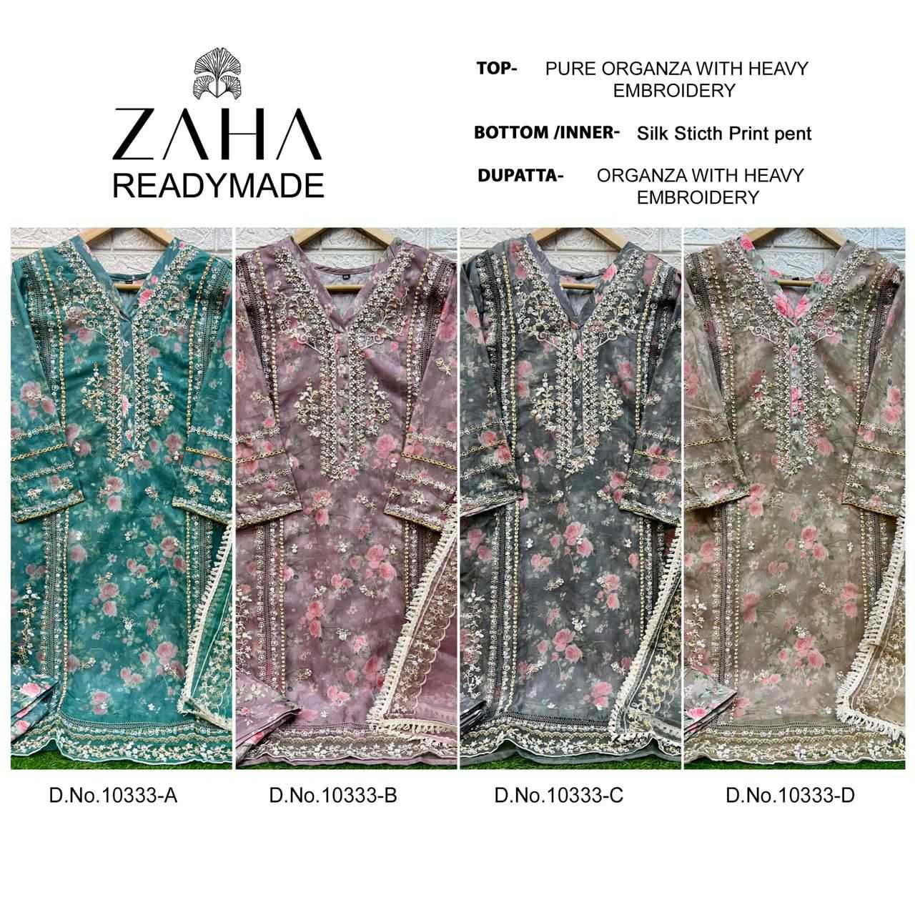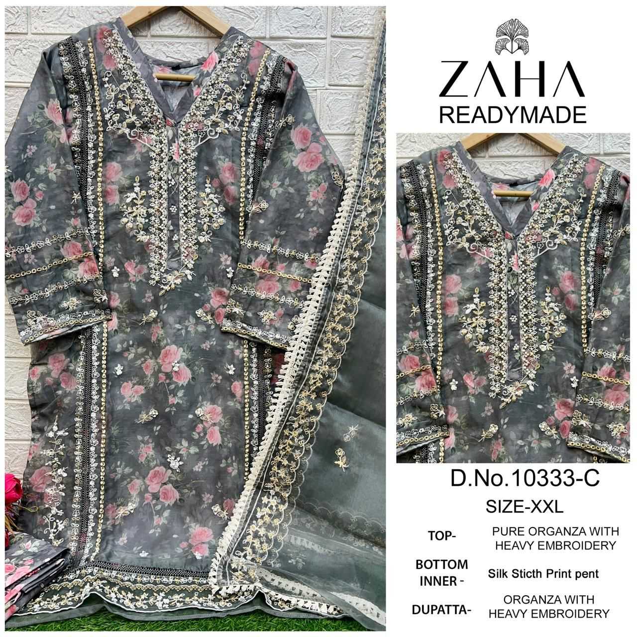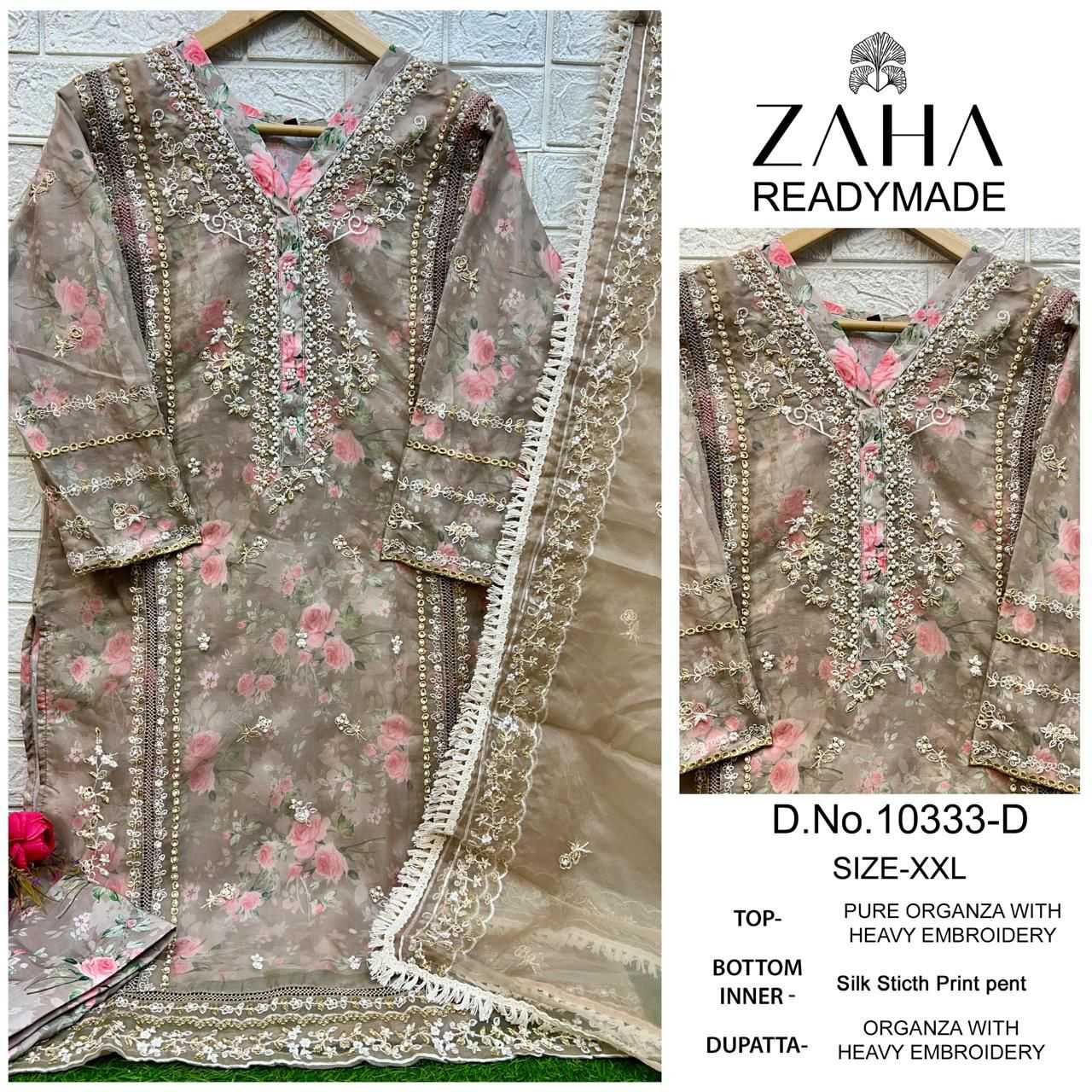 zaha 10333 launch organza modal pakistani embroidered work full stitch kurti pant dupatta