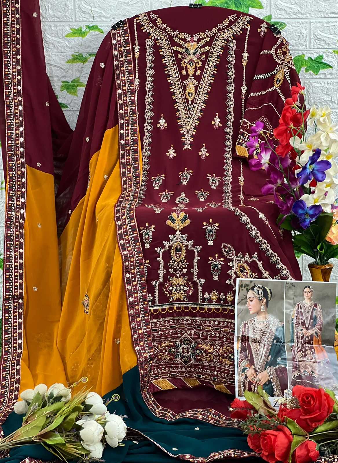 🙏🏻Dear ZAHA 👇🏻Fabric details 👇🏻 👗 Top : GEORGETTE WITH HEAVY EMBROIDERED 👖Bottom :SANTOON 🏳️🌈Dupatta : NAZMIN WITH HEAVY EMBROIDERED 🏳️⚧️INNER :- SANTOON 🚚Dispatch reday 🚚 Regards |