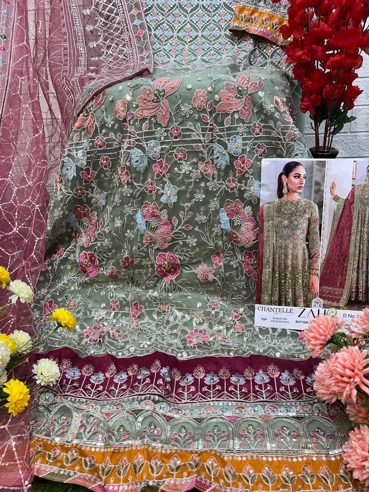 zaha chantelle vol 5 10293 butterfly net embroidered pakistani dress material