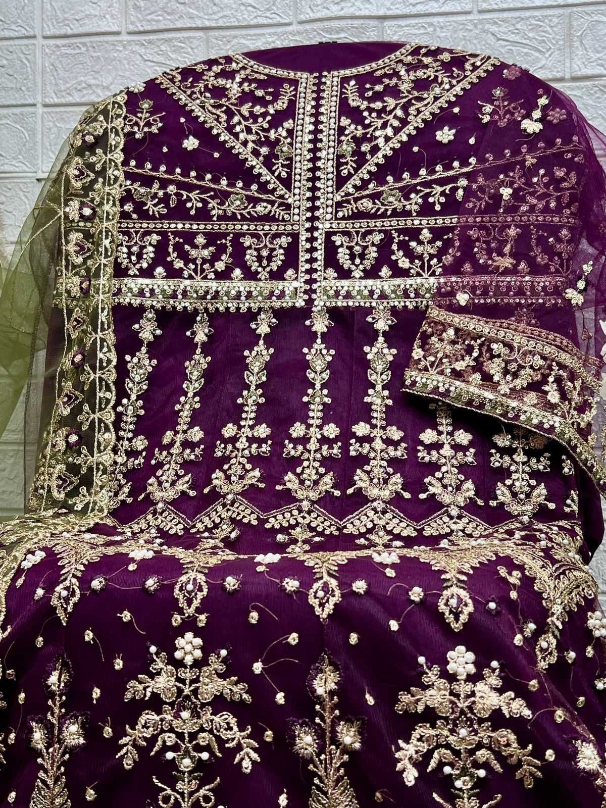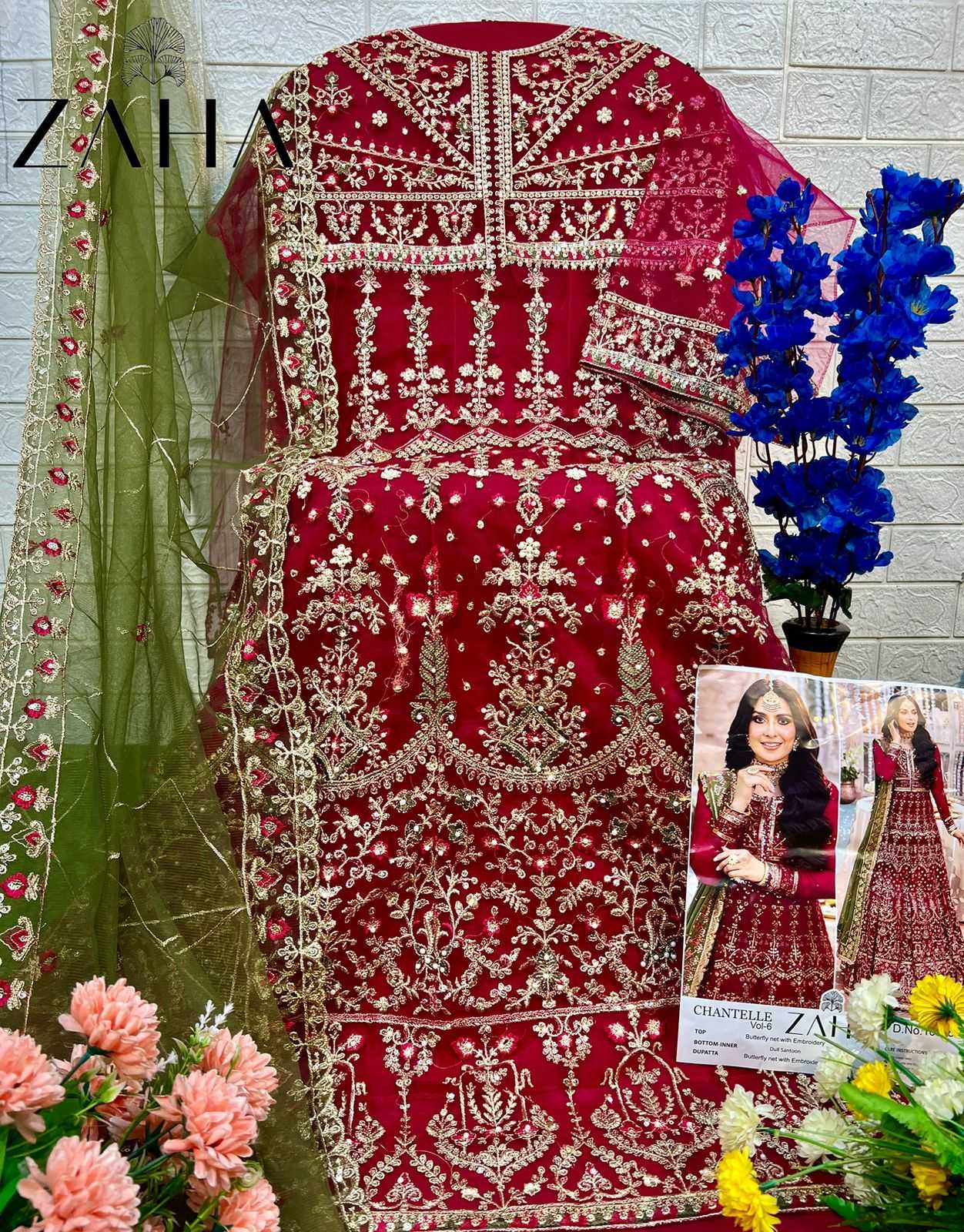 zaha chantelle vol 6 stylish butterfly net fancy moti work indian pakistani kurti pant dupatta