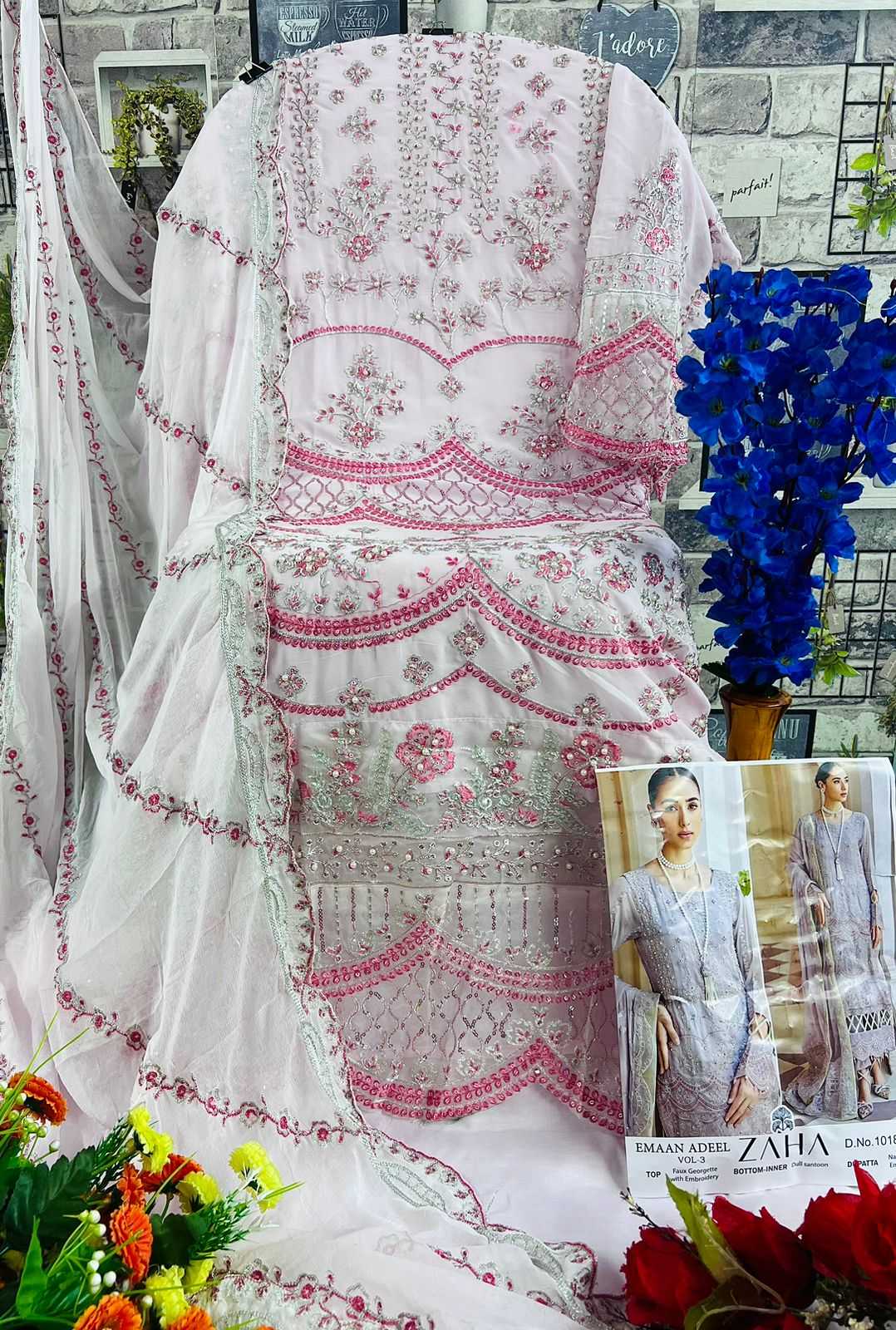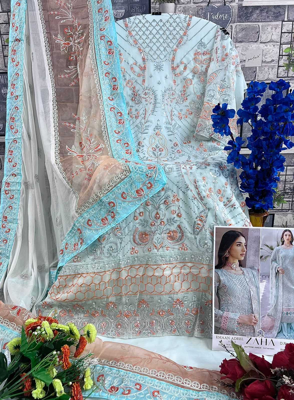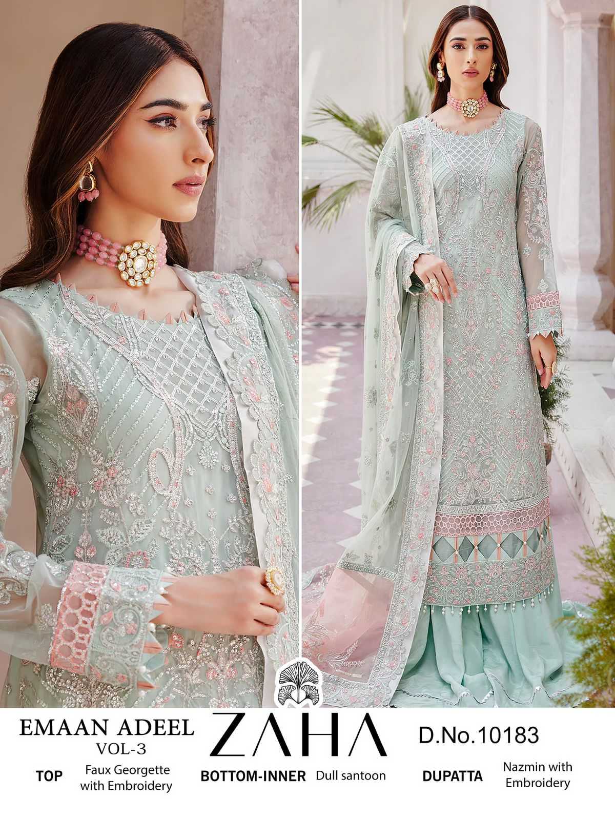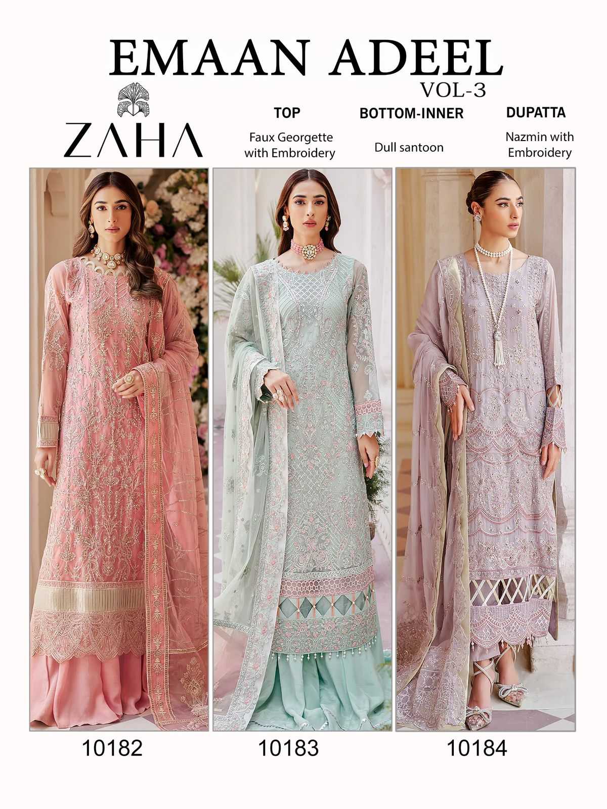 zaha emaan adeel vol 3 designer embroidery pakistani suit material