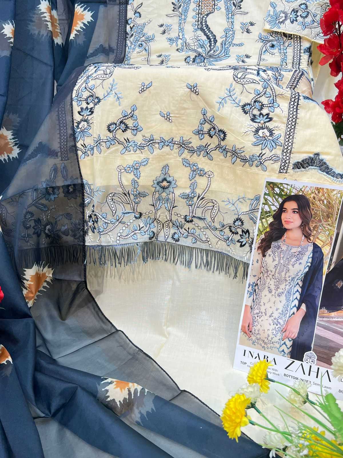 zaha inara vol 1 launch cotton embroidery modal pakistani kurti pant dupatta material