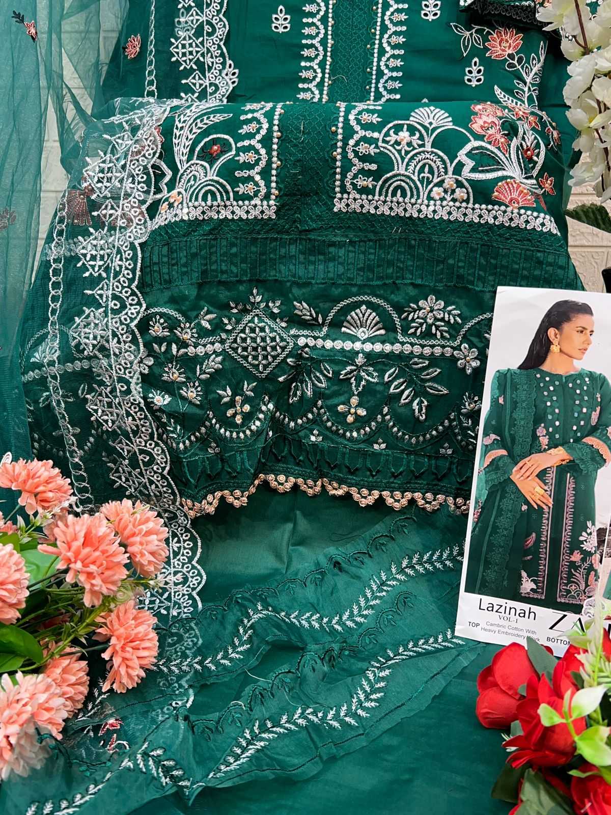 🙏🏻Dear ZAHA 👗 Top : PURE CAMBRIC COTTON WITH HEAVY EMBROIDERY 👖Bottom :PURE PC COTTON 🏳️🌈Dupatta : BUTTERFLY NET WITH HEVEY EMBROIDERY