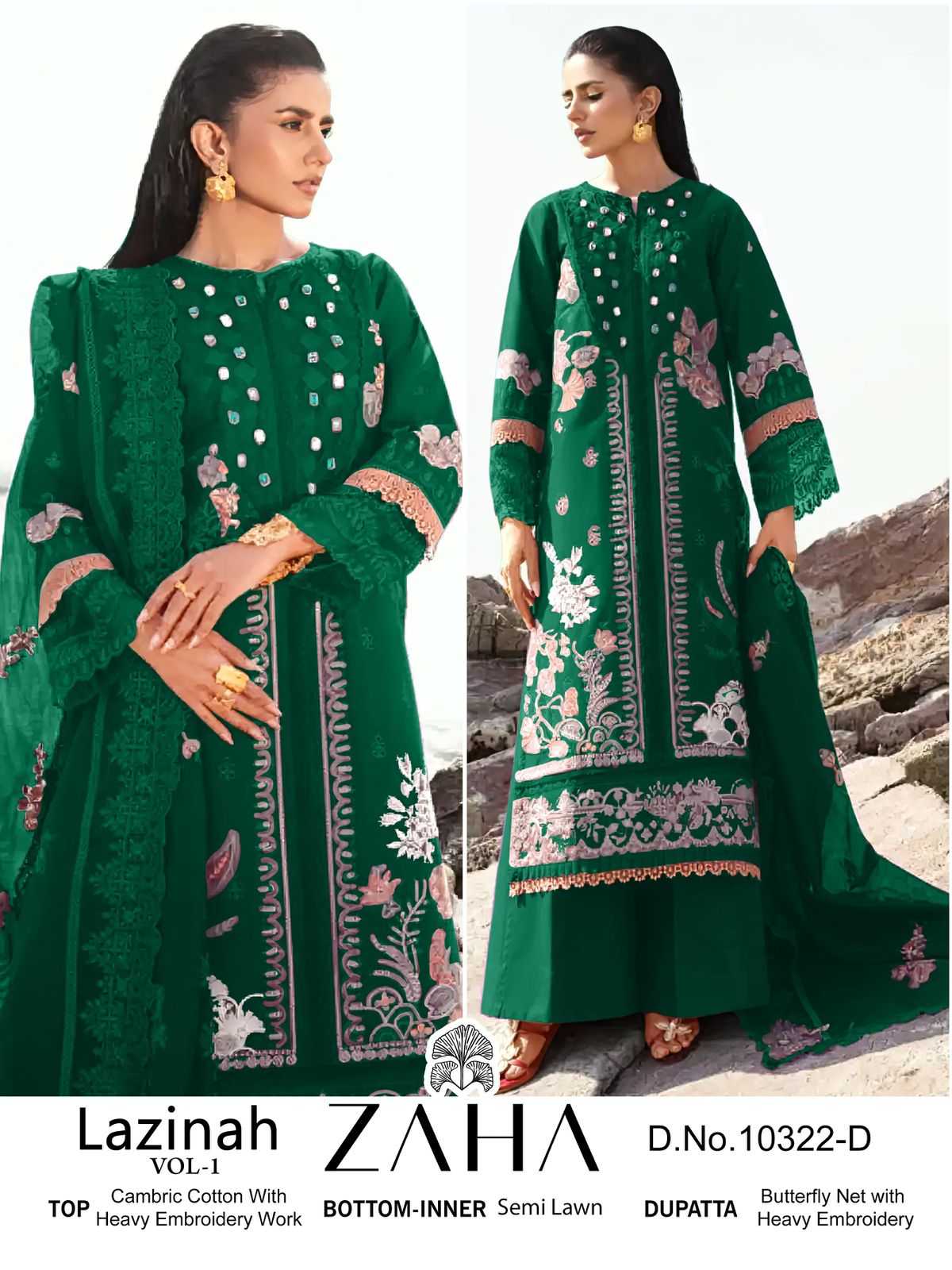 zaha launch lazinah fancy cotton heavy embroidery work stylish pakistani dress material