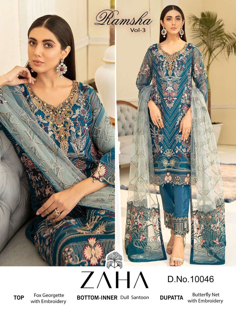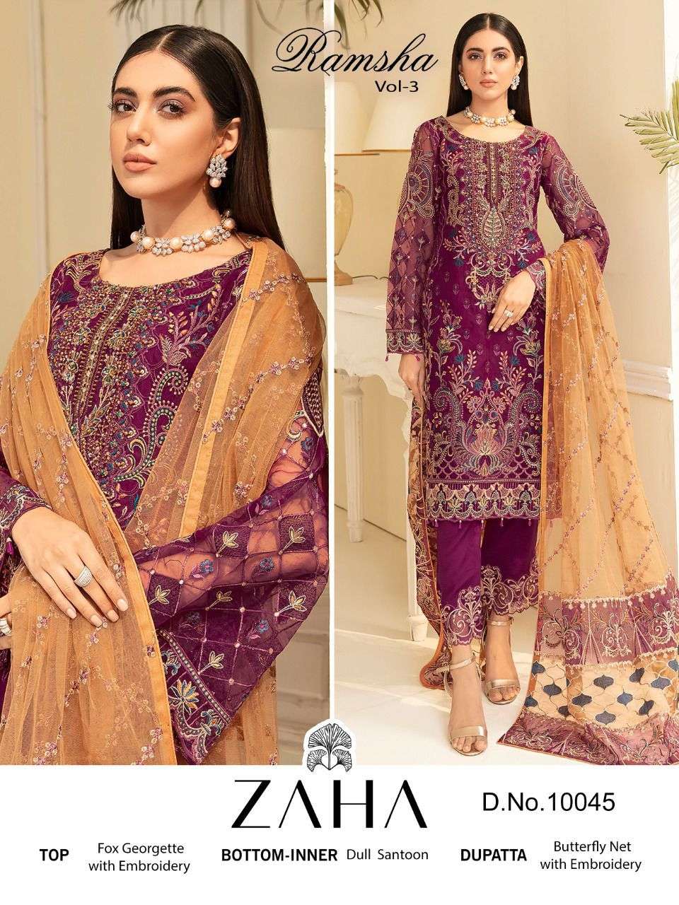 zaha ramsha vol 3 heavy embroidery georgette dresses