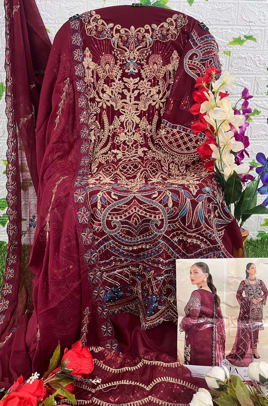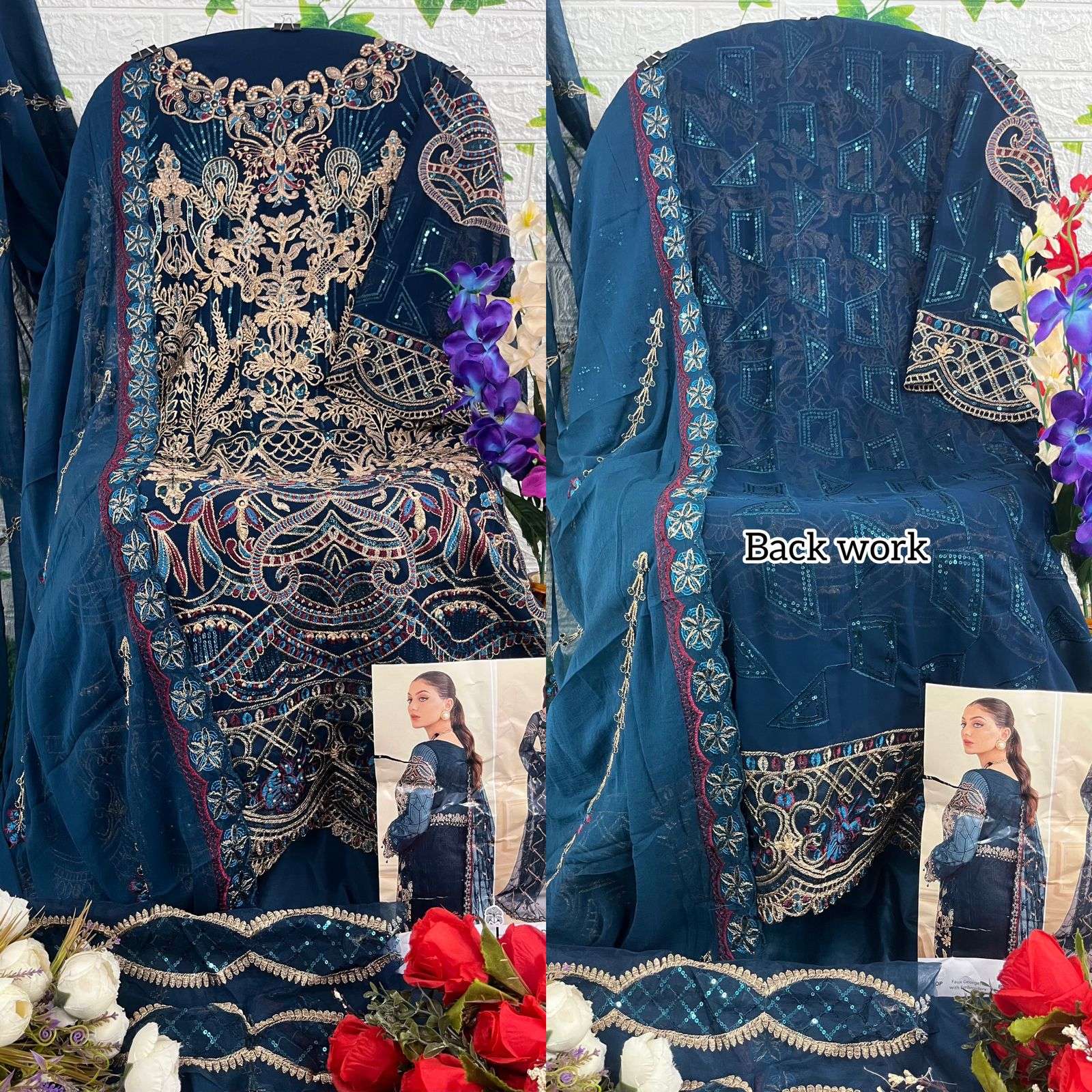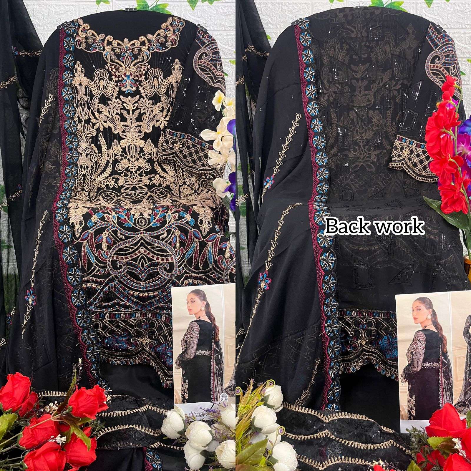 👇🏻Fabric details 👇🏻 👗 Top : GEORGETTE WITH HEAVY EMBROIDERED ND BACK WORK 👖Bottom :SANTOON WITH PATCH WORK 🏳️🌈Dupatta : NAZMIN WITH HEAVY EMBROIDERED 🏳️⚧️INNER :- SANTOON |
