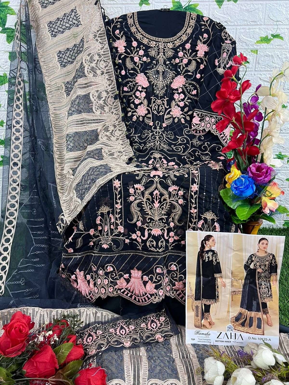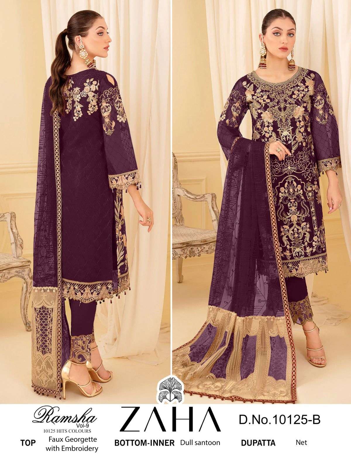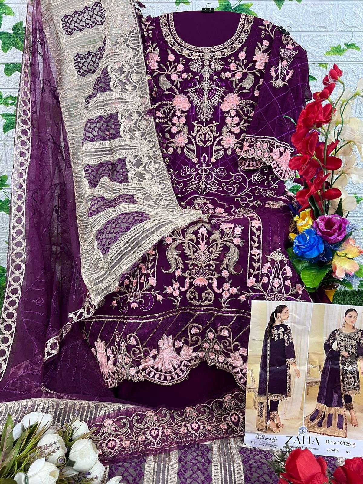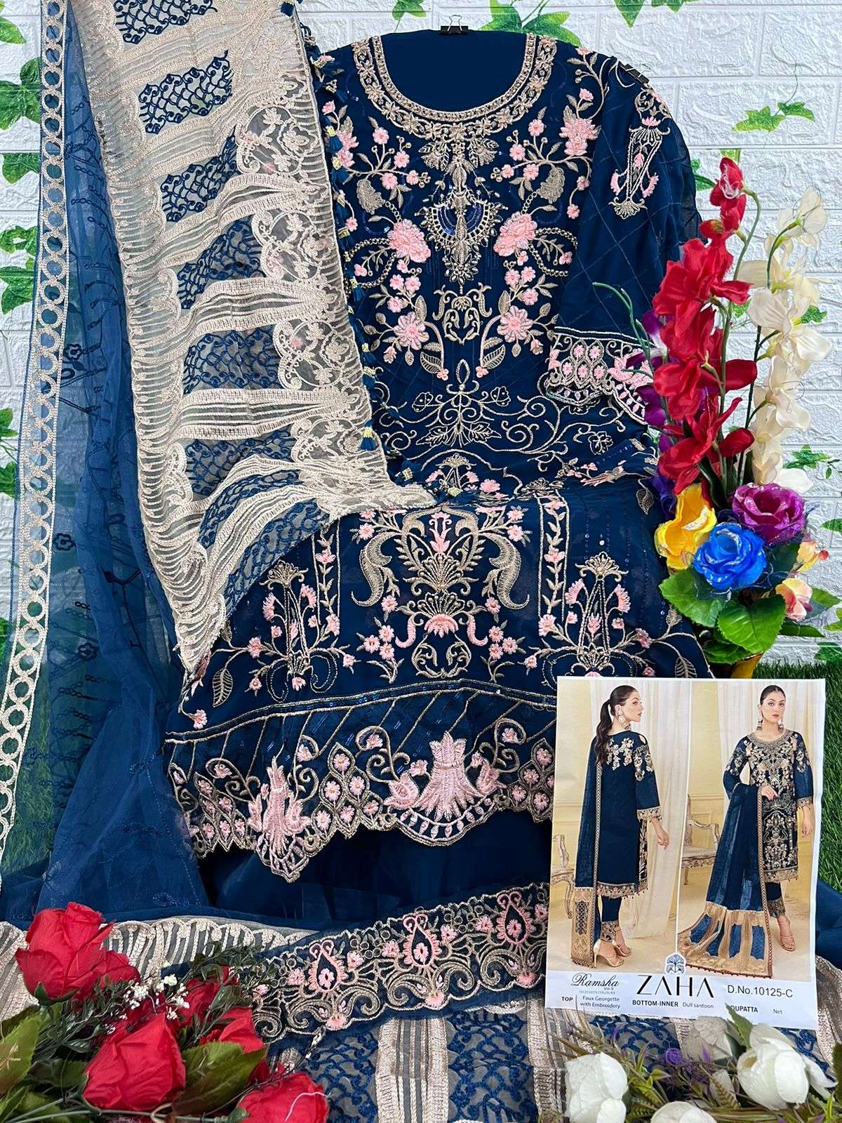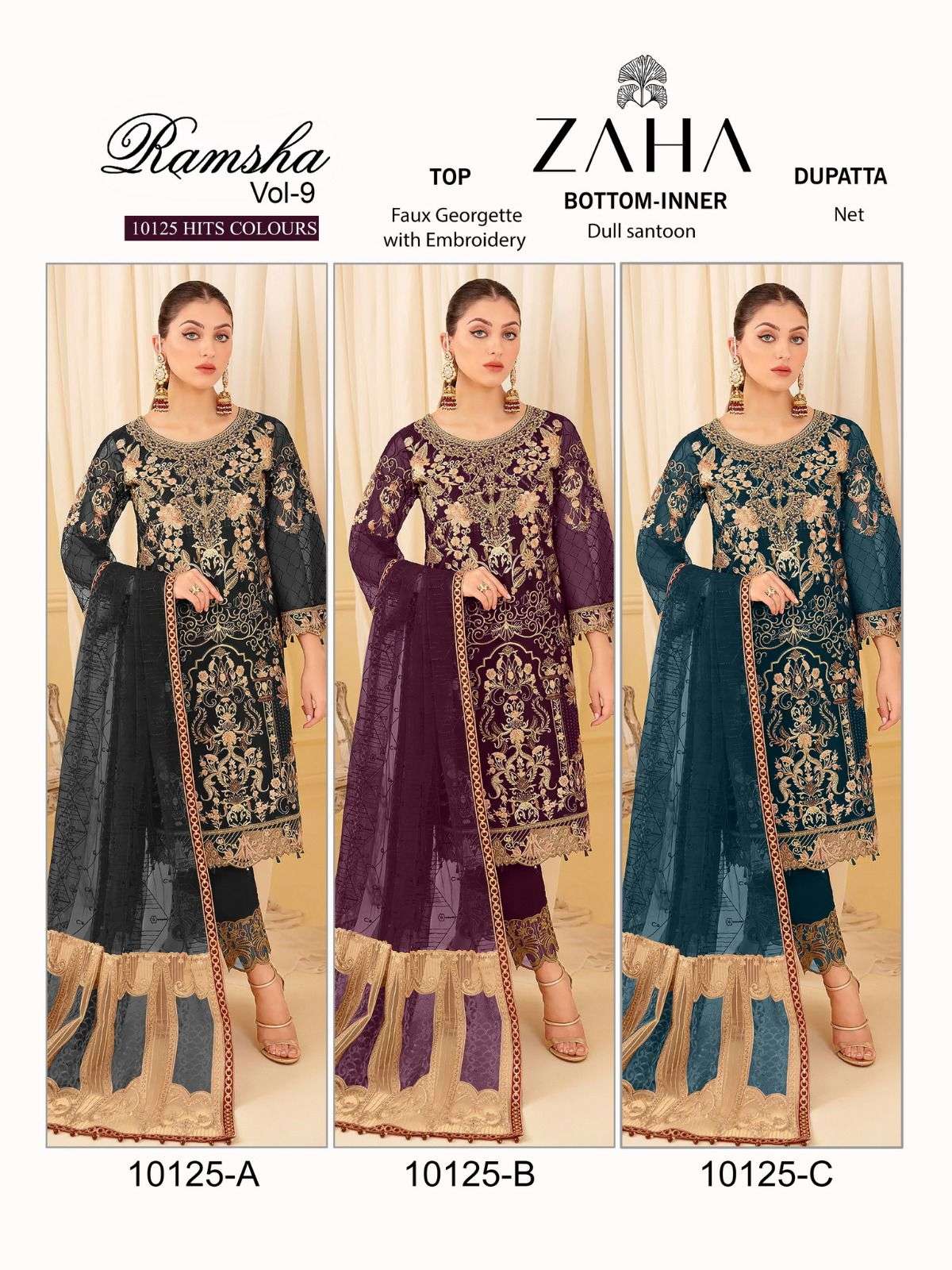 zaha ramsha vol 9 10125 hits colours designer work pakistani ladies suits material