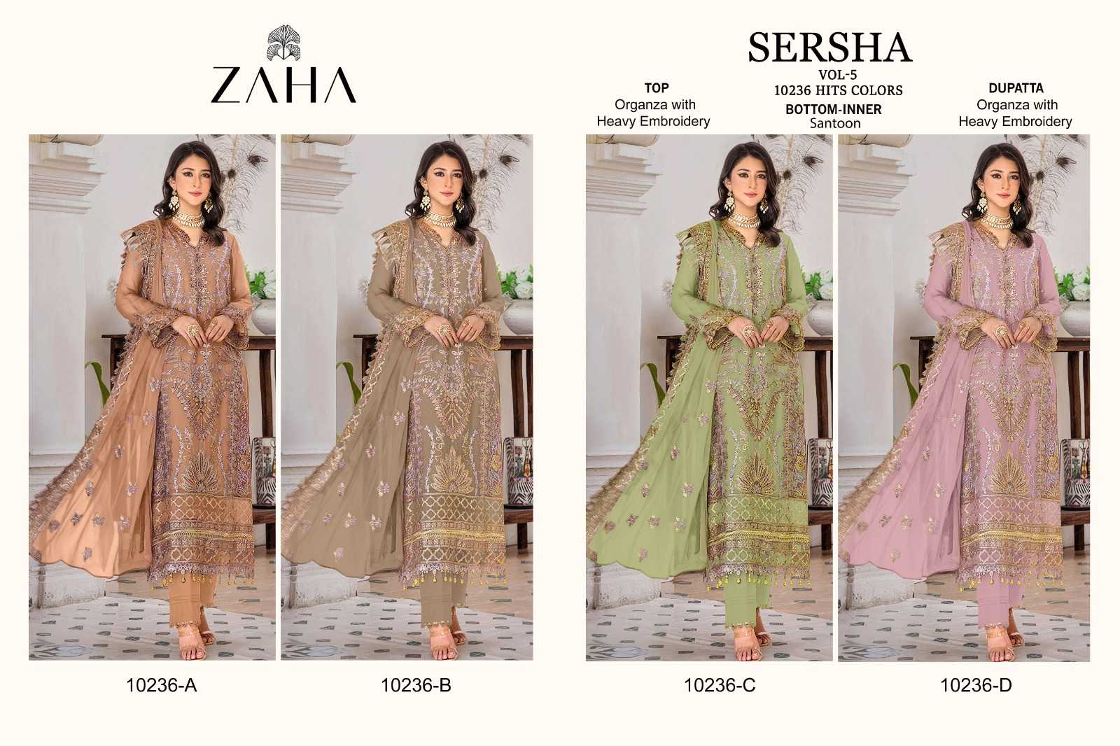 zaha sersha vol 5 organza embroidered modal pakistani salwar kameez