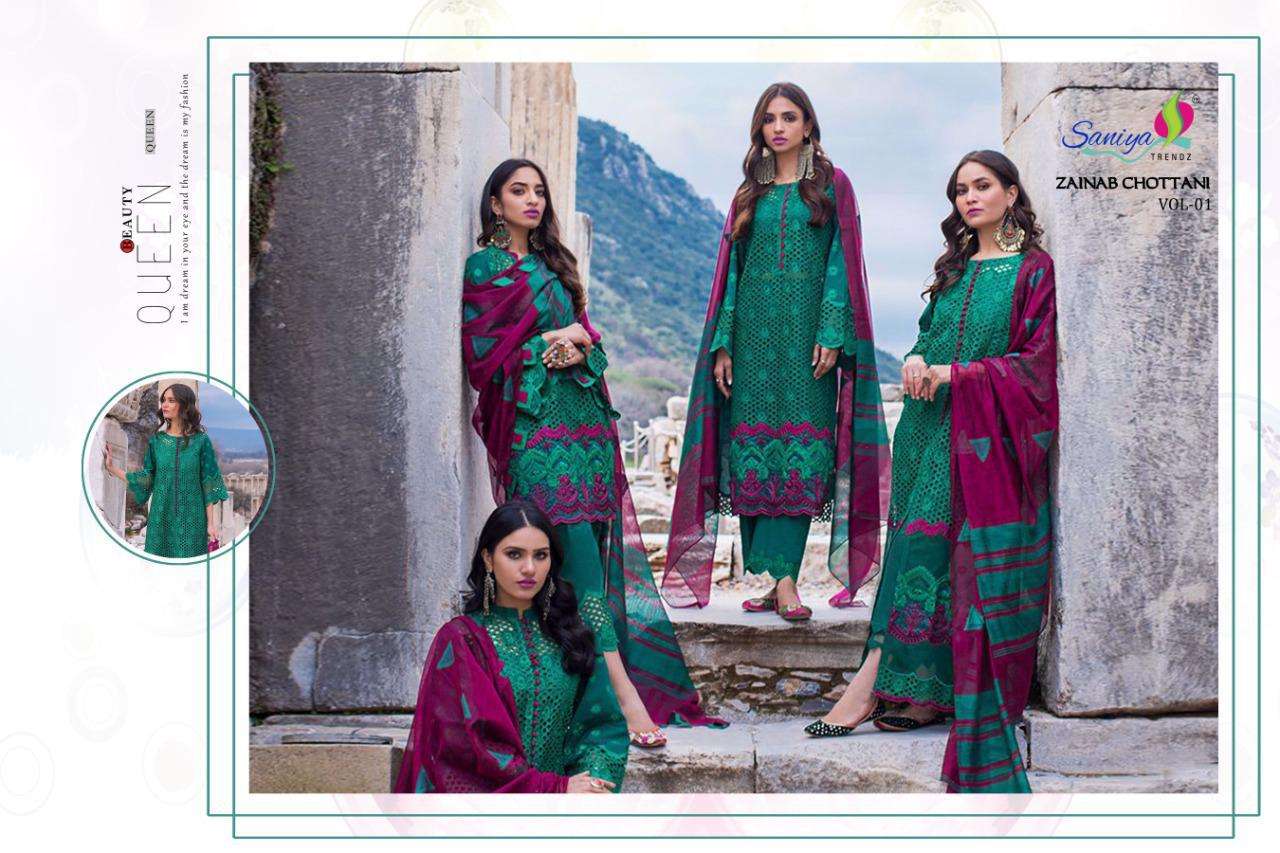 🎁Today SANIYA TRENDZ hitting market again with exclusively trending series of pakistani catlogs 💕ZAINAB CHOTTANI 1. 🌲 👇🏻Fabric details 👇🏻 |