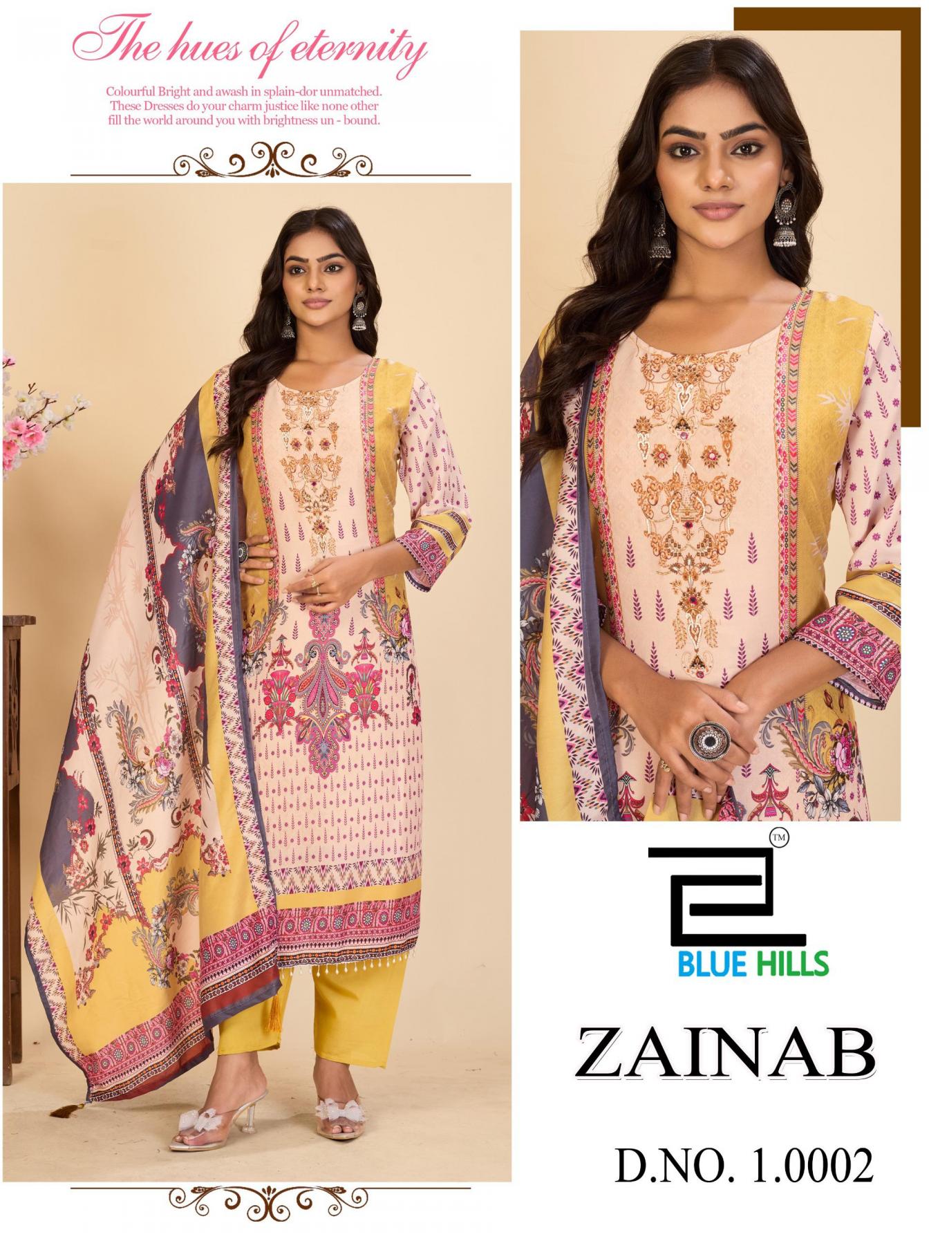 📣📣Dear Customers,📣📣 Welcome to BLUE HILLS (KURTI) 🙏🙏 We are introducing OUR new catalog 📕Catalogue:- *ZAINAB vol 10 ✅ Concept - *3 pcs 👗CLOTH:- *poly muslin digital print Top with crape inner In neck handwork Top front with Moti lace work ✅ Dupatta:- *poly muslin digital print Length 46 Bottom ROMAN SILK Size:- M L XL XXL 3XL 4xl 5xl Size M TO 5xl Rate - 870+GST 4 Design CATALOGUE 🚛 : Dispatch - 2 to 3 days |