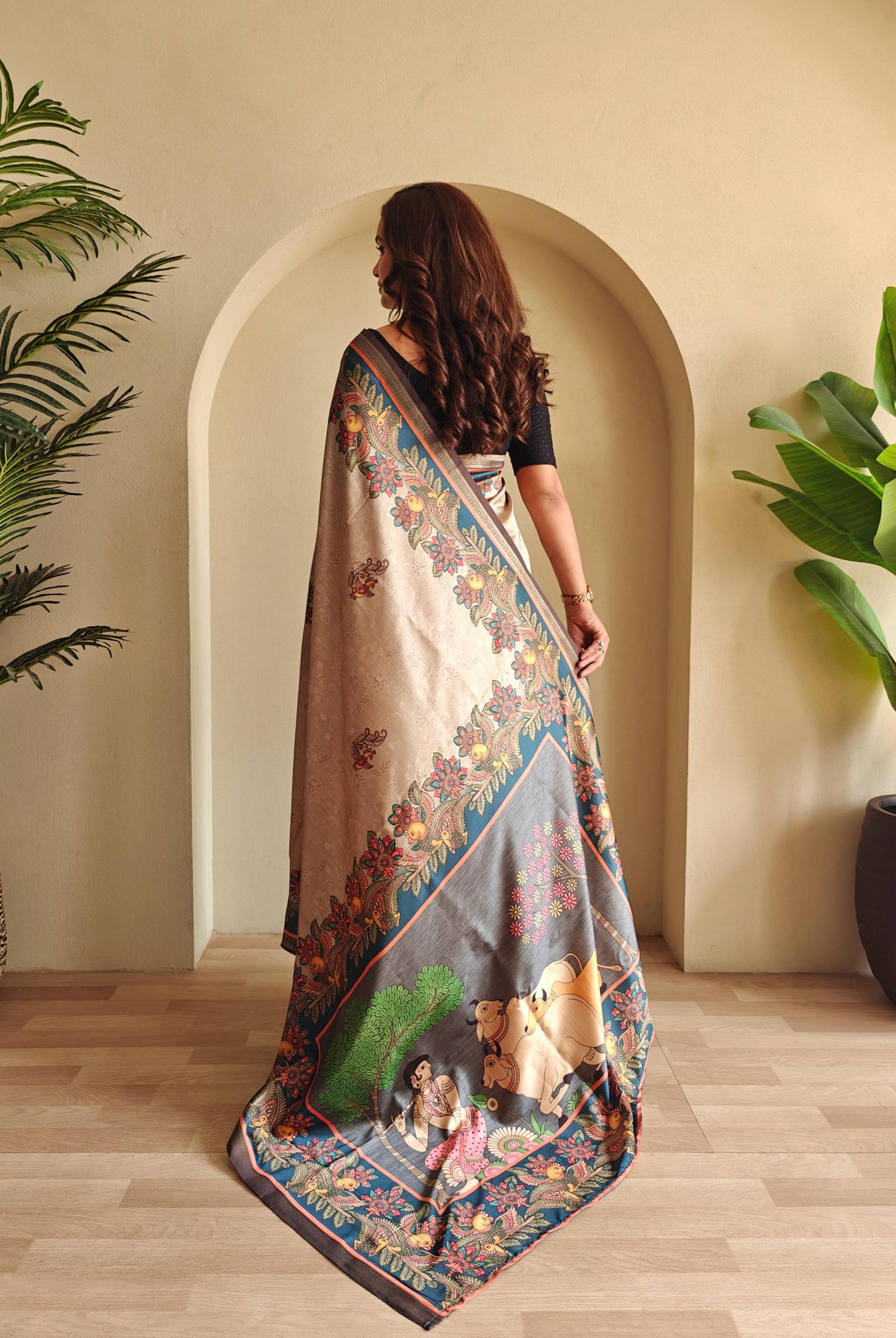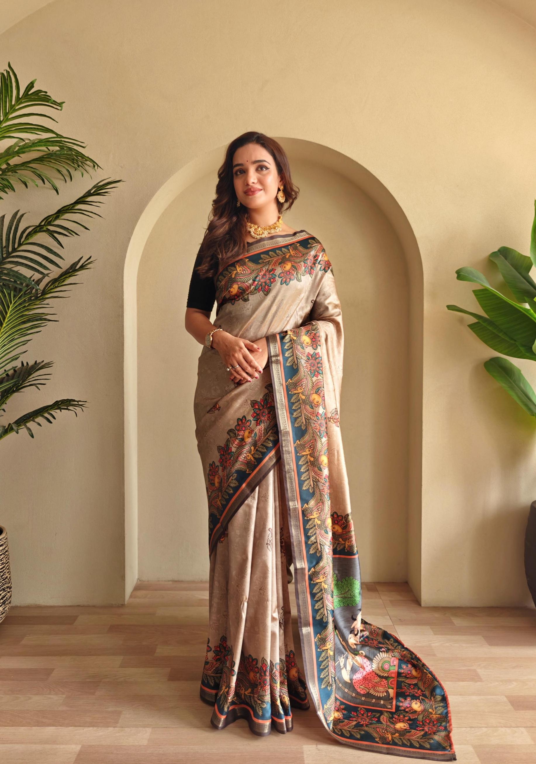 zalak amazing silk kalamkari fusion print saree wholesaler