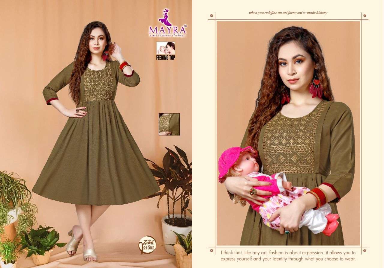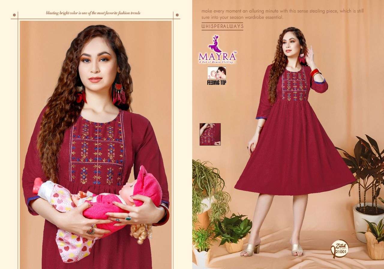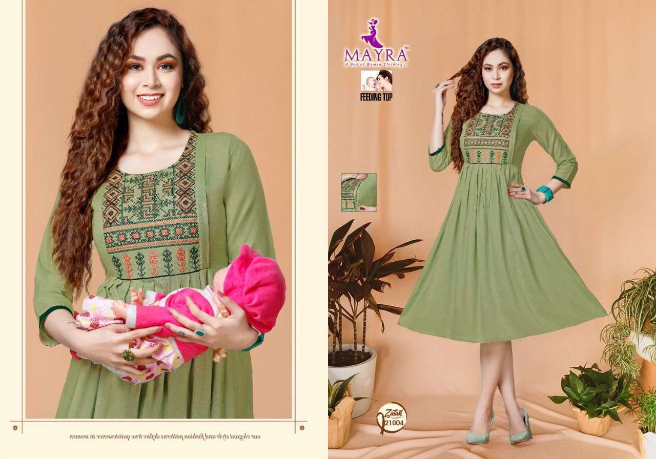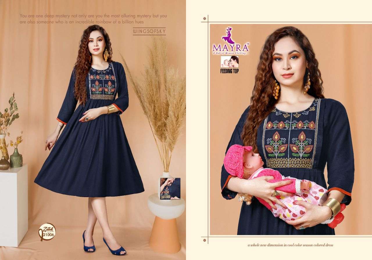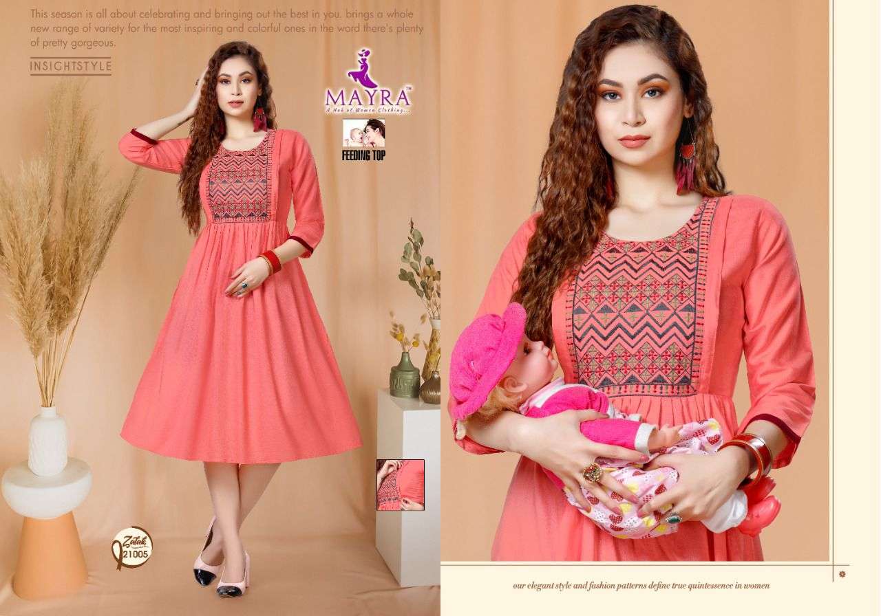 ZALAK BY MAYRA HEAVY REYON 14 kg Rayon Slub Embroydrey Feeding top CONCEPT KURTI CATLOG WHOLESALER BEST RATE