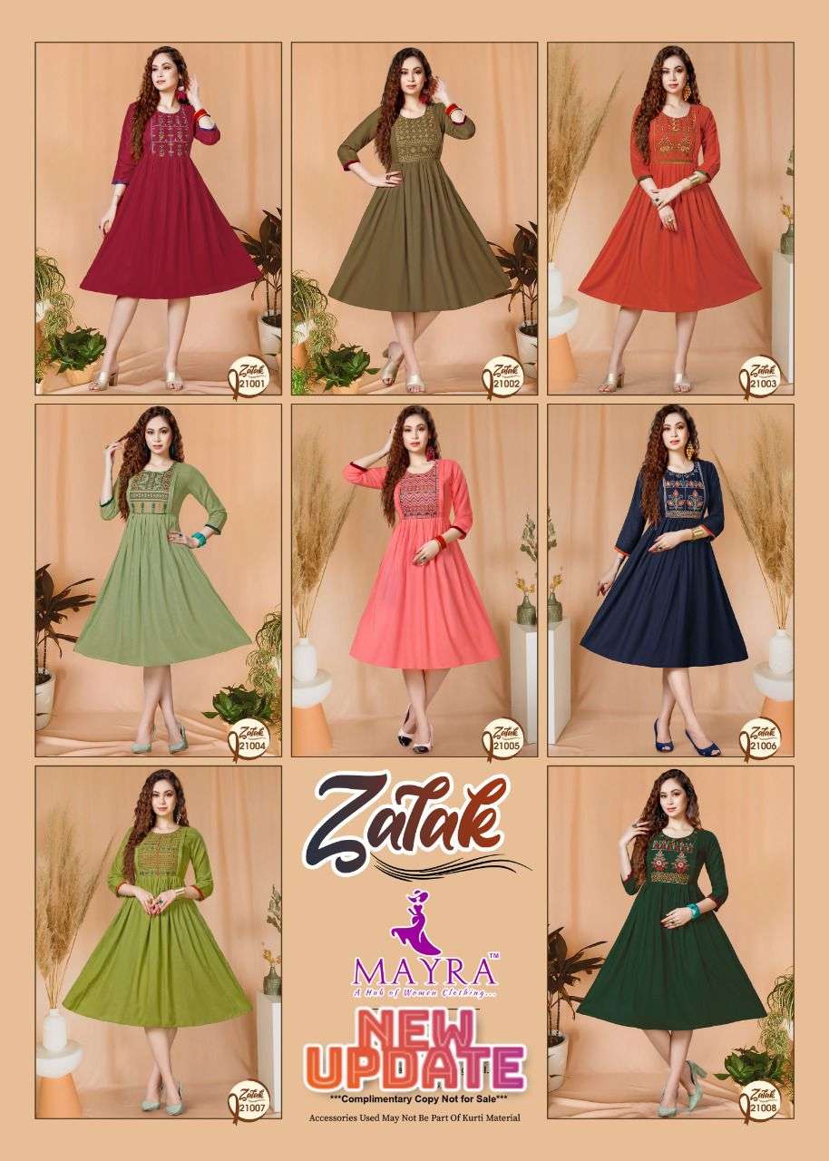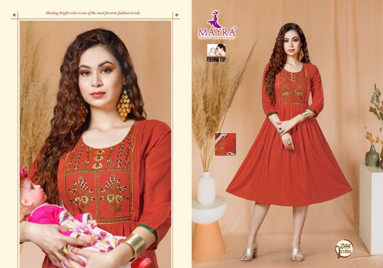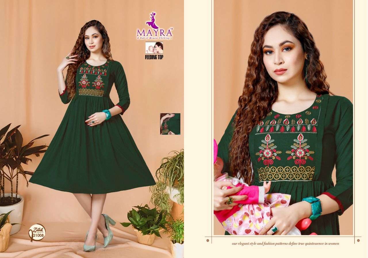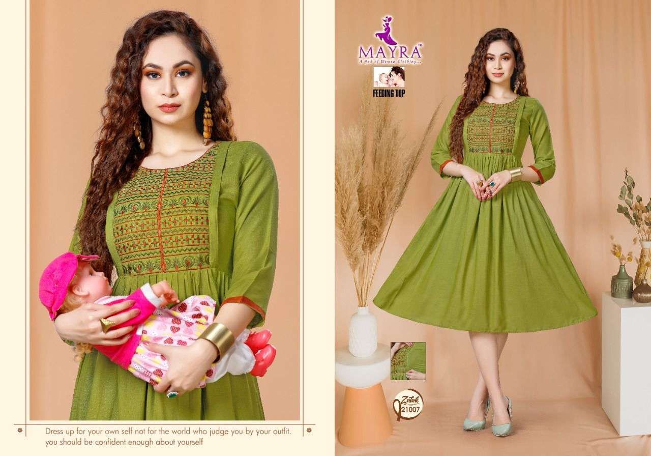 ZALAK BY MAYRA HEAVY REYON 14 kg Rayon Slub Embroydrey Feeding top CONCEPT KURTI CATLOG WHOLESALER BEST RATE