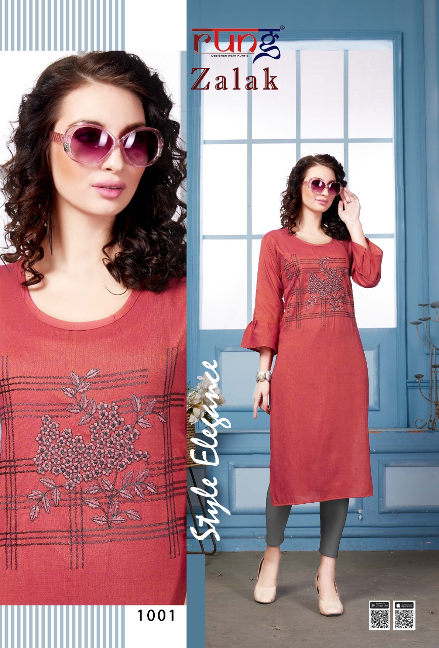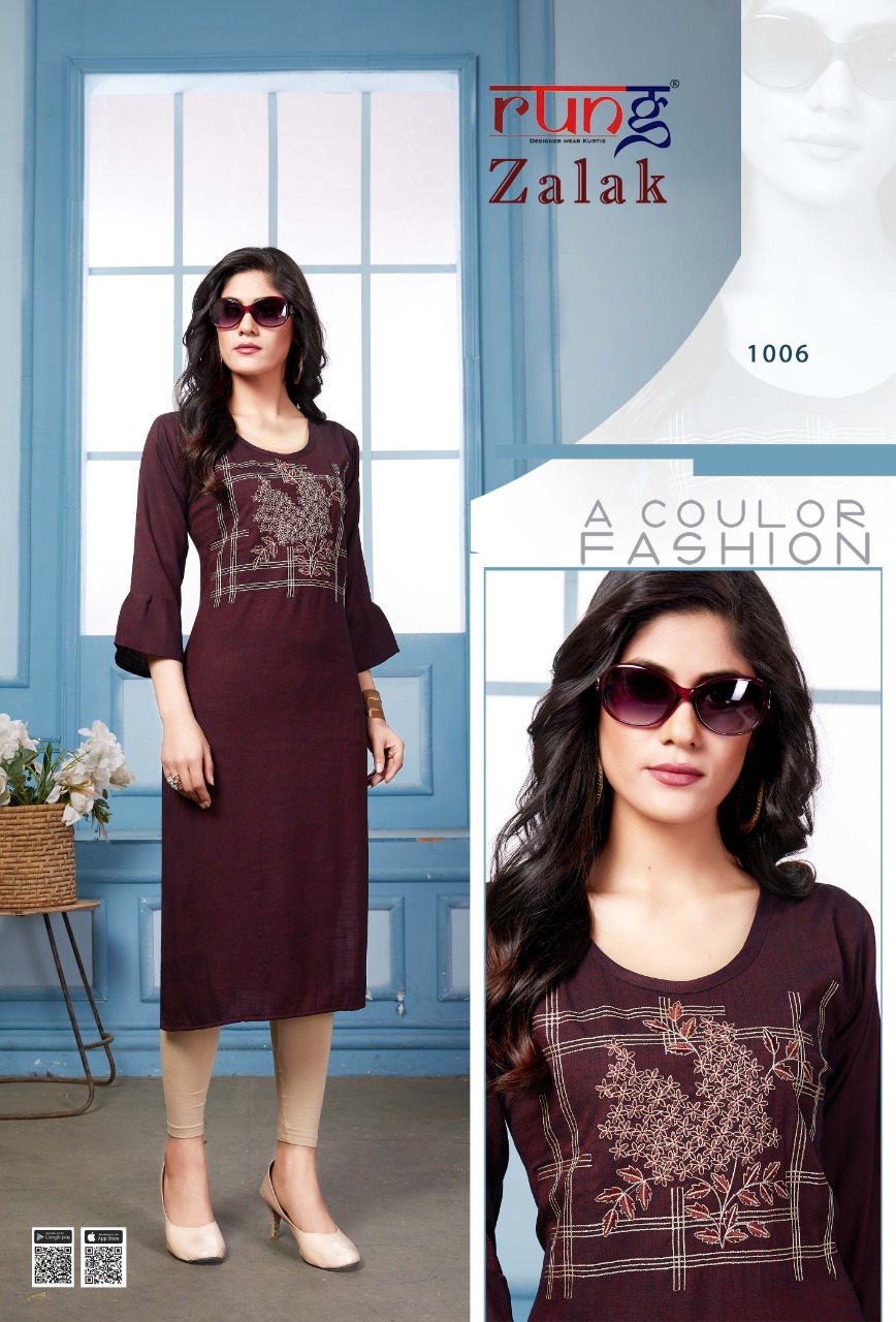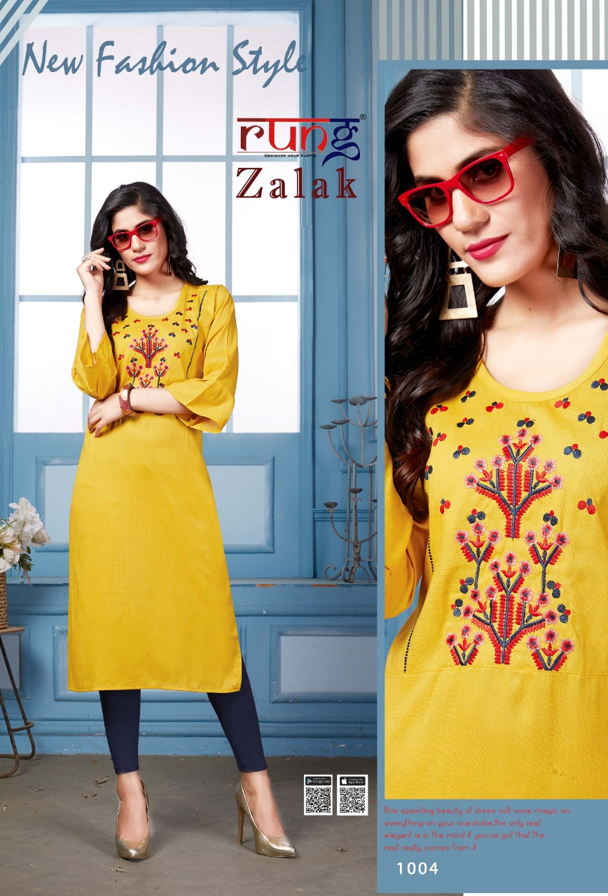 Zalak By Rung Rayon Embroidery Formal Wear Kurti Seller