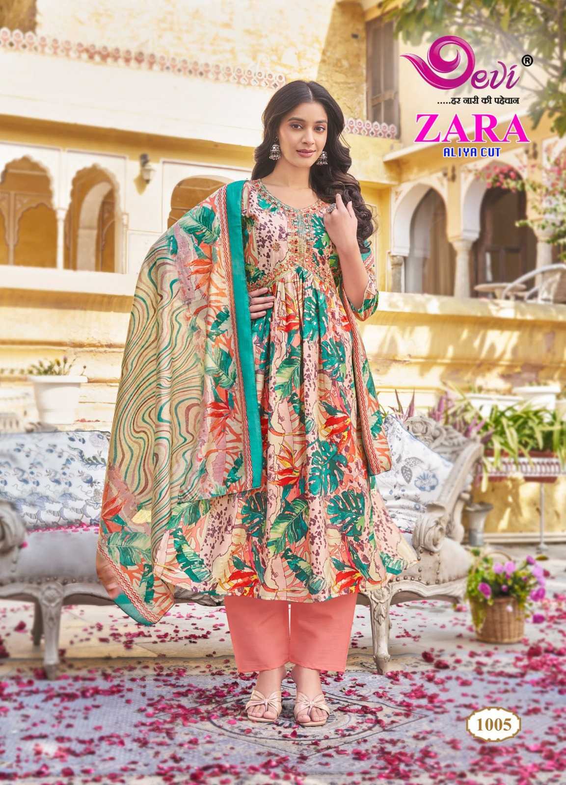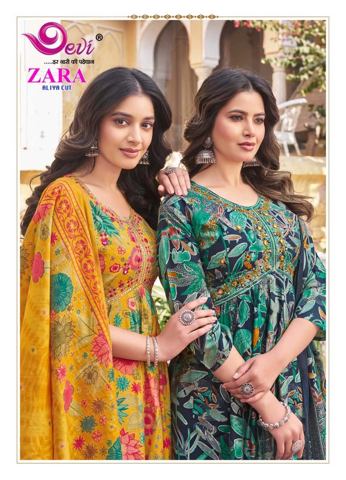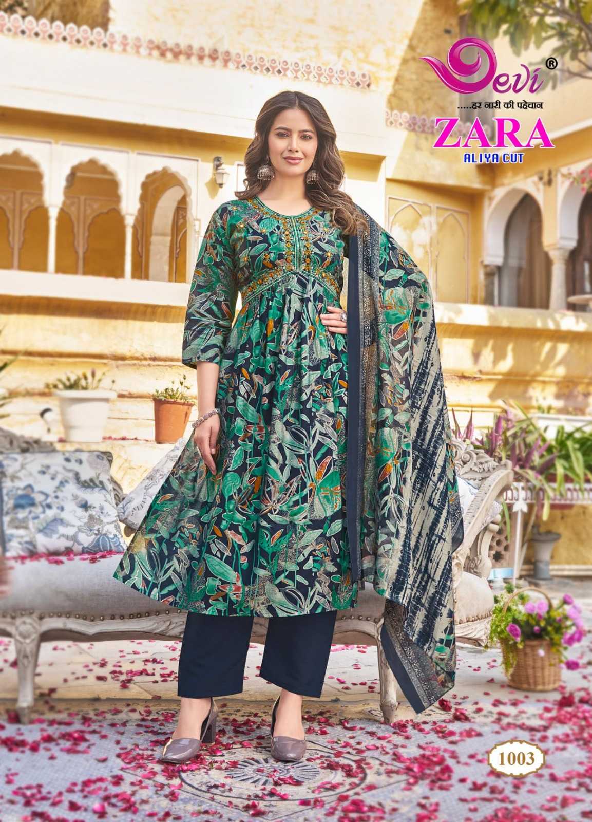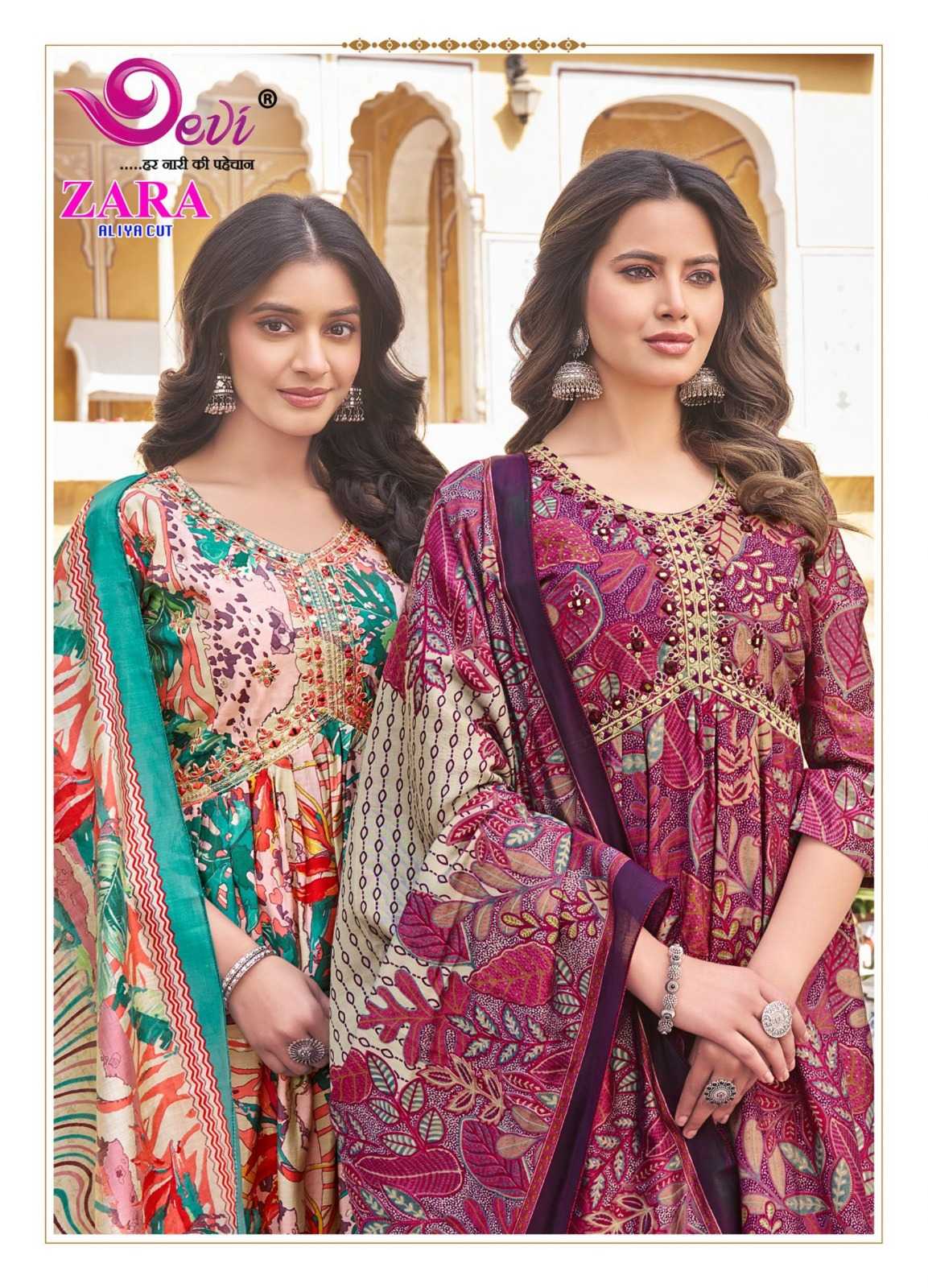 zara aliya cut by devi amazing design muslin print readymade salwar suit
