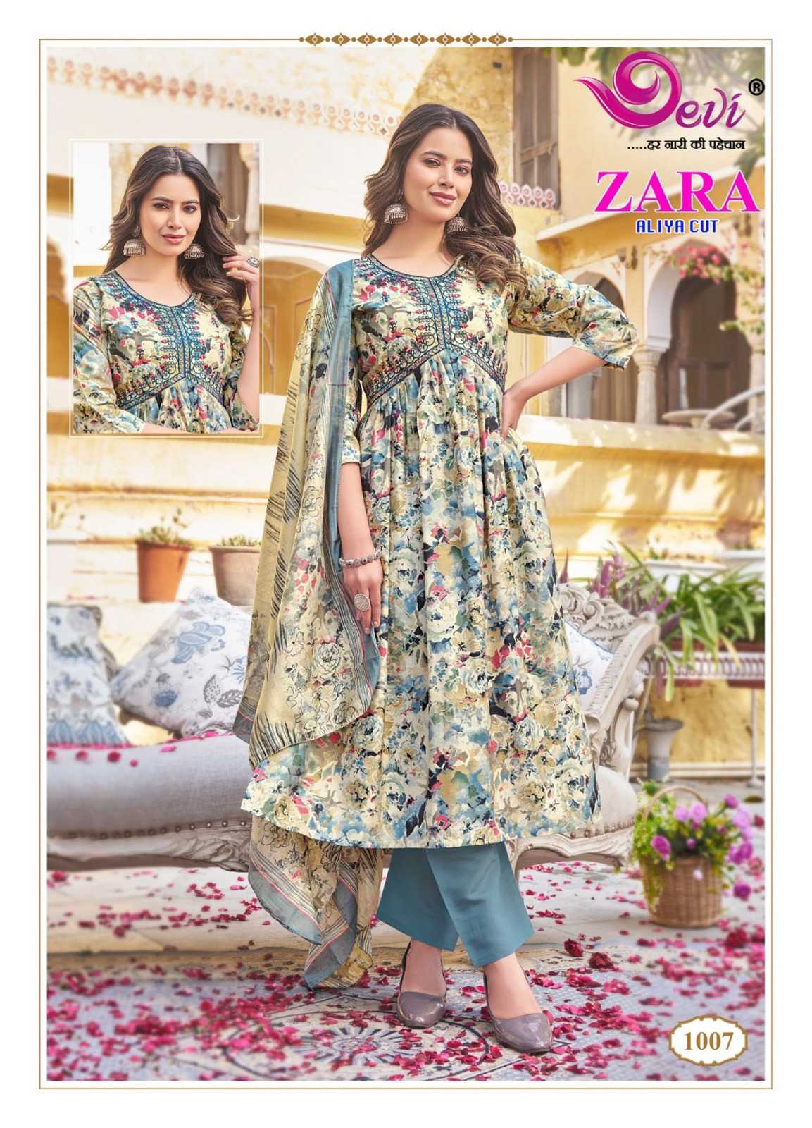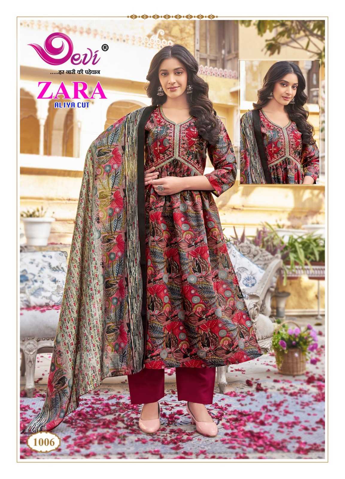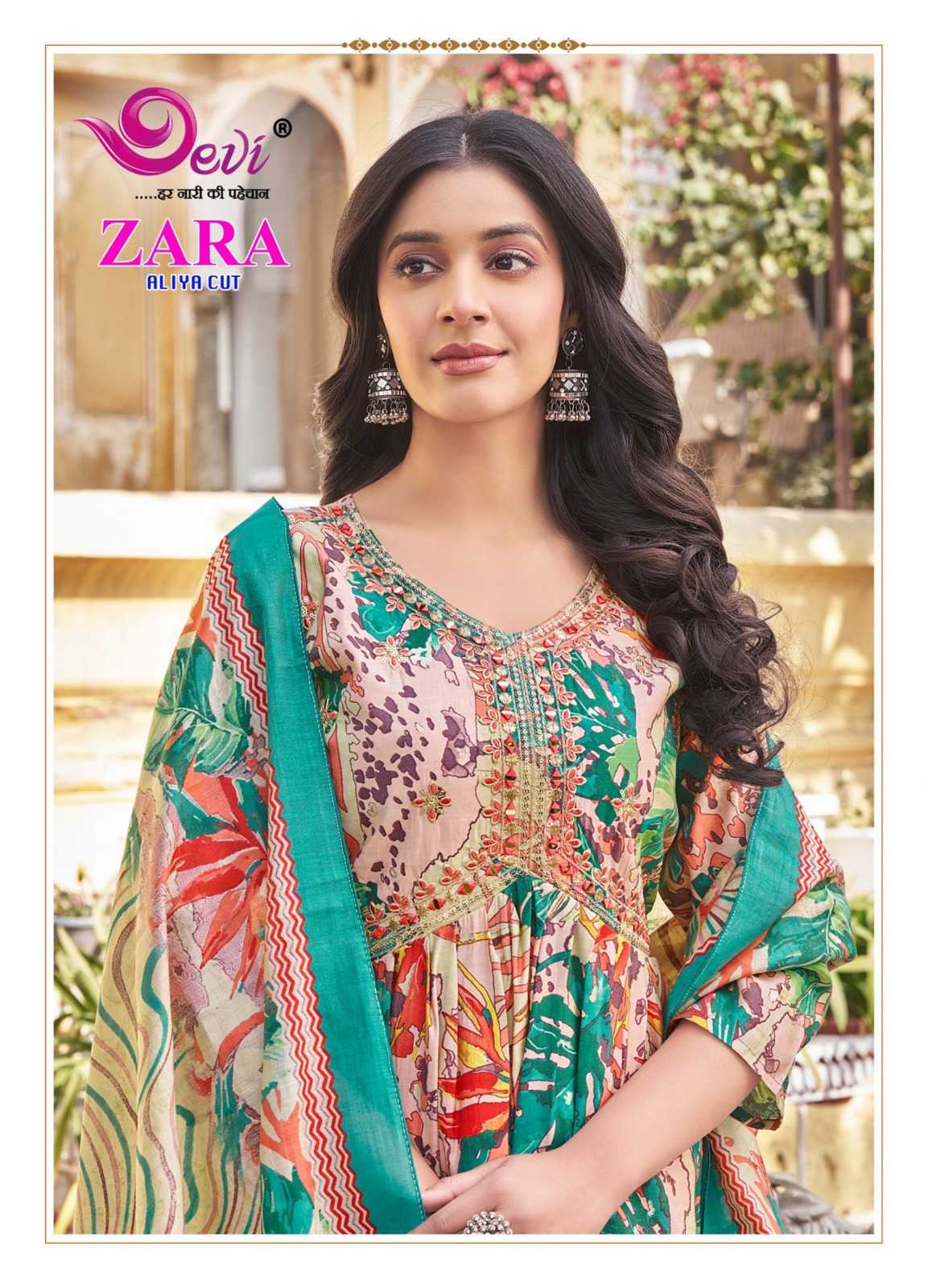 zara aliya cut by devi amazing design muslin print readymade salwar suit