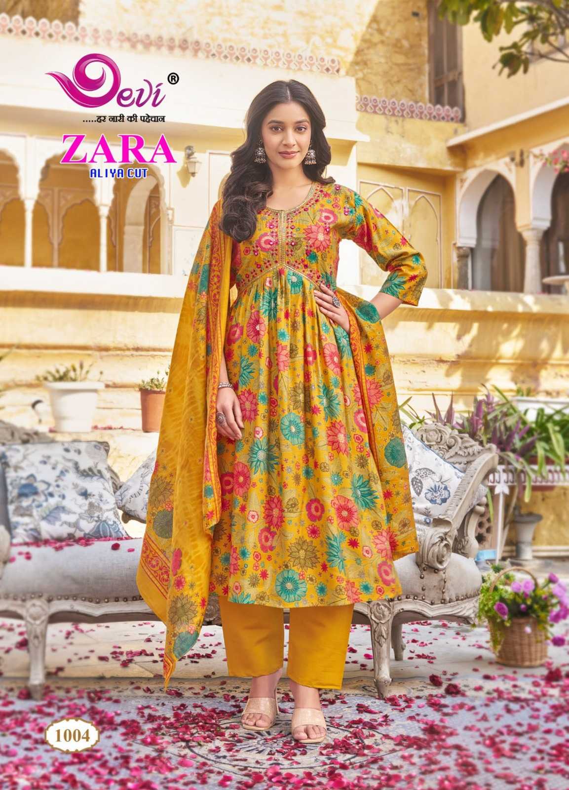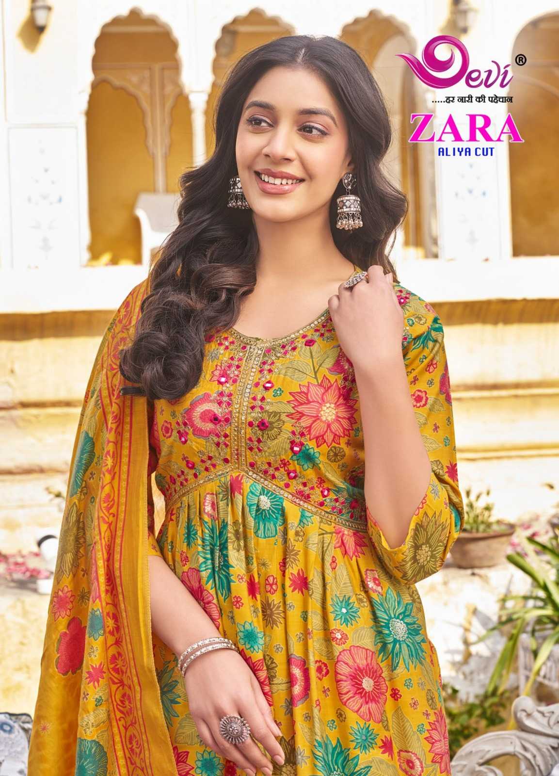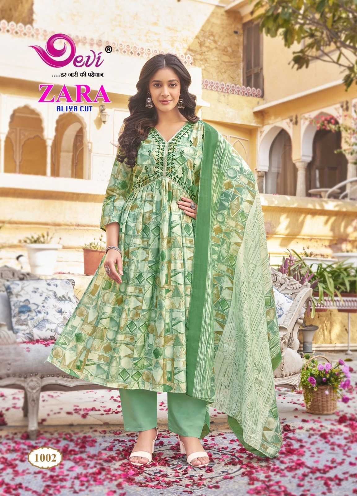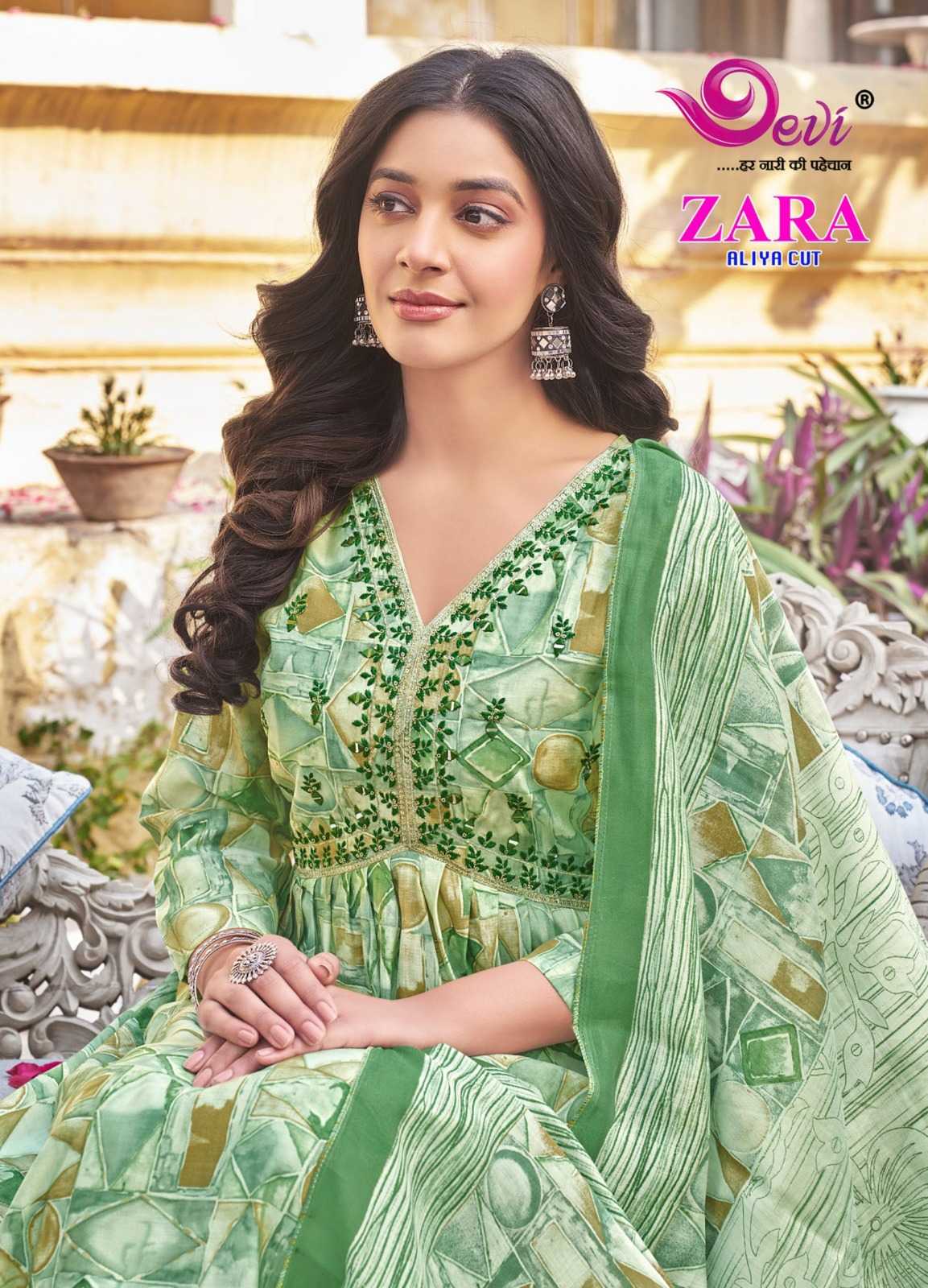 zara aliya cut by devi amazing design muslin print readymade salwar suit