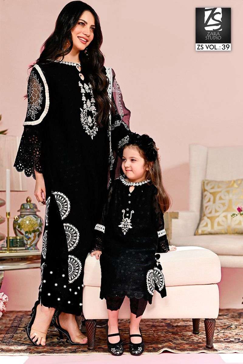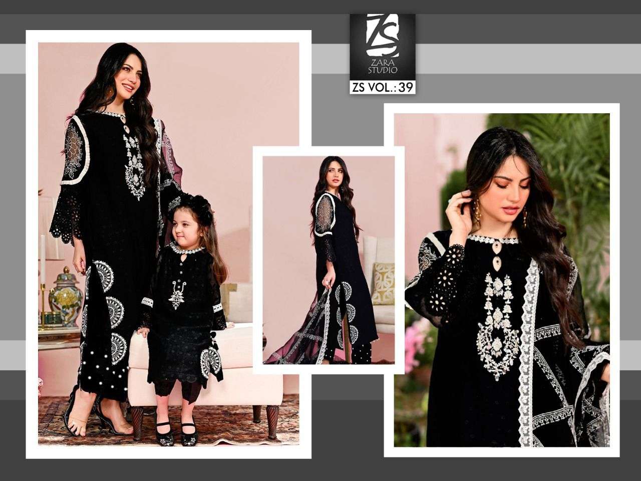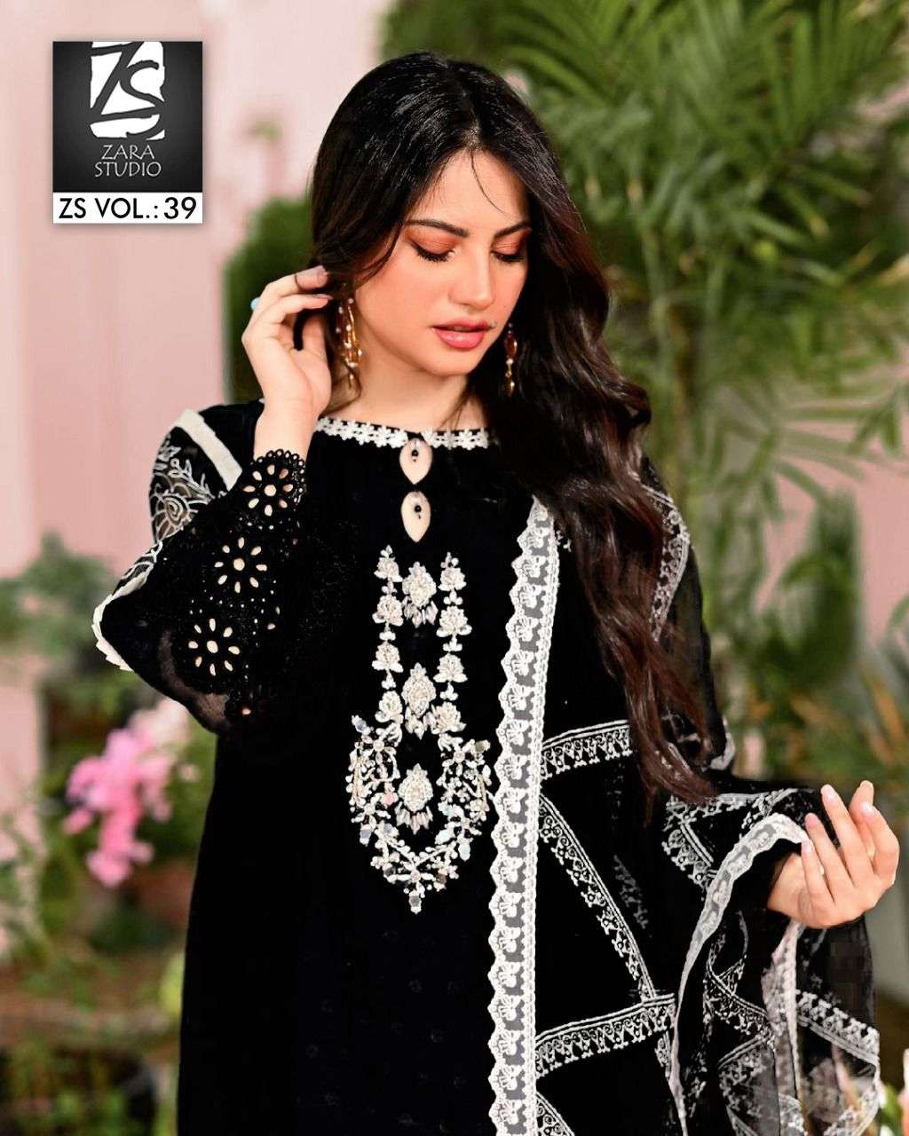 zara studio zs vol 39 georgette readymade pakistani black colour suits