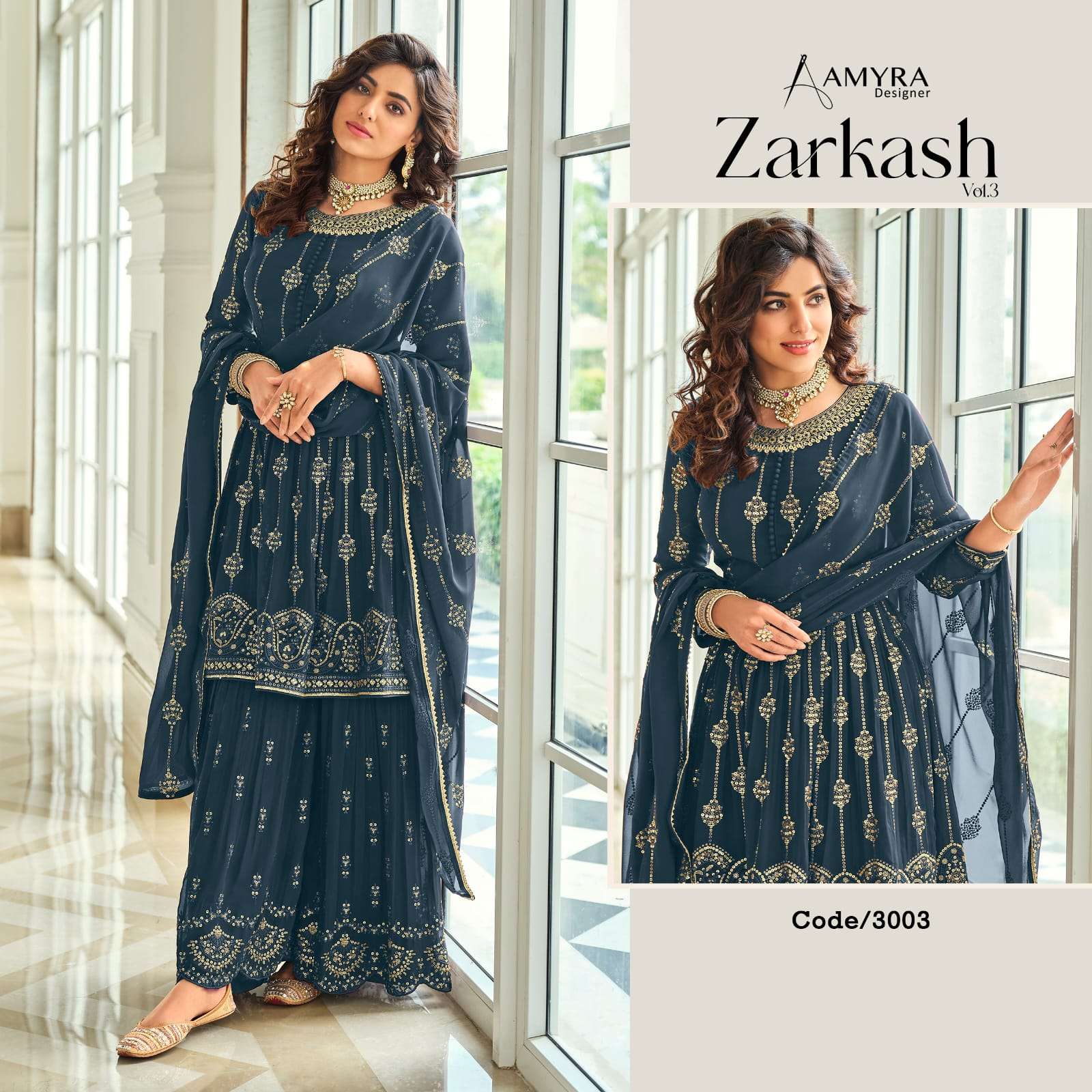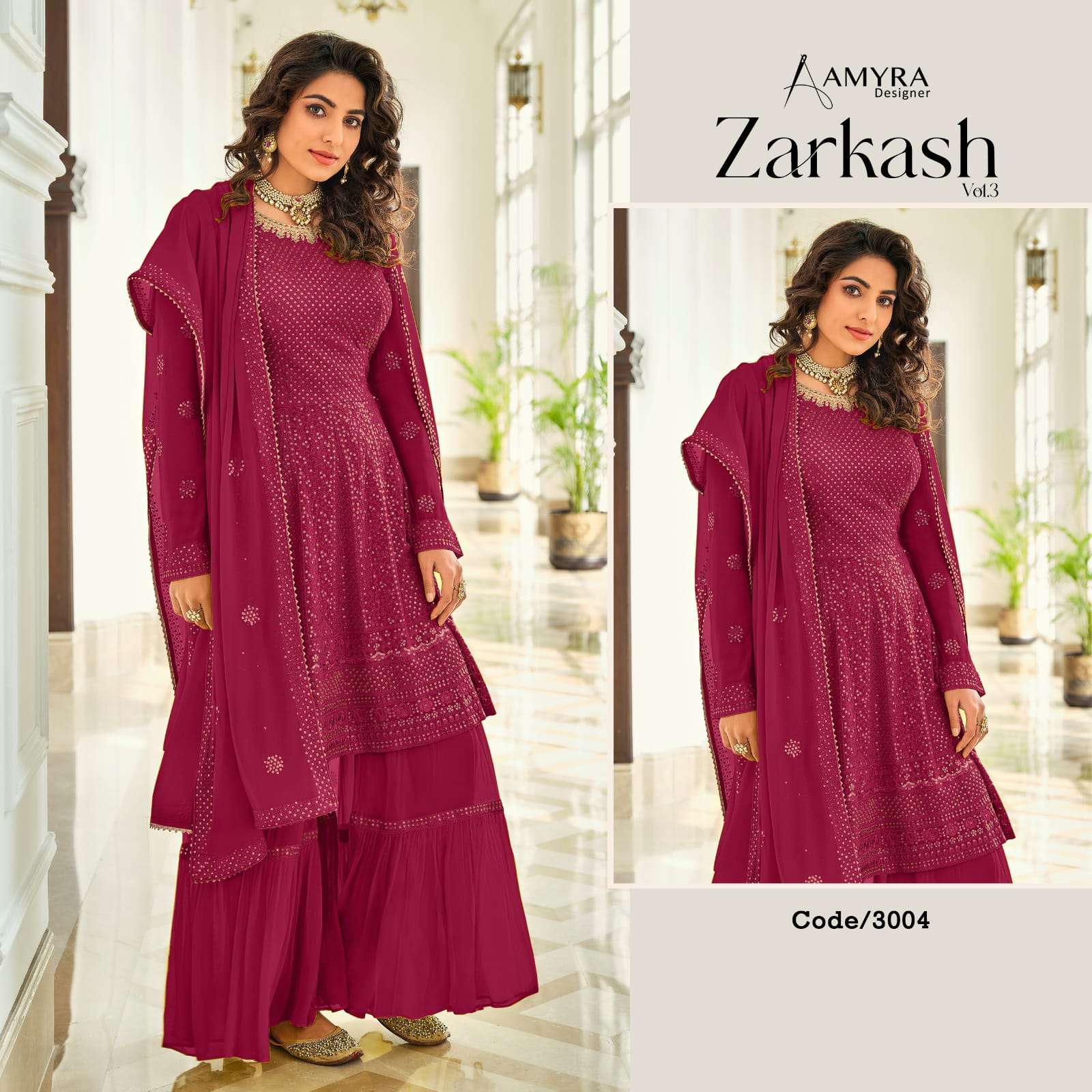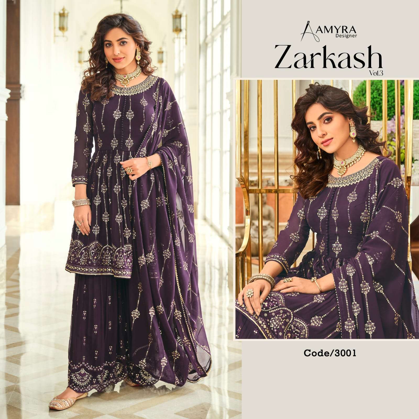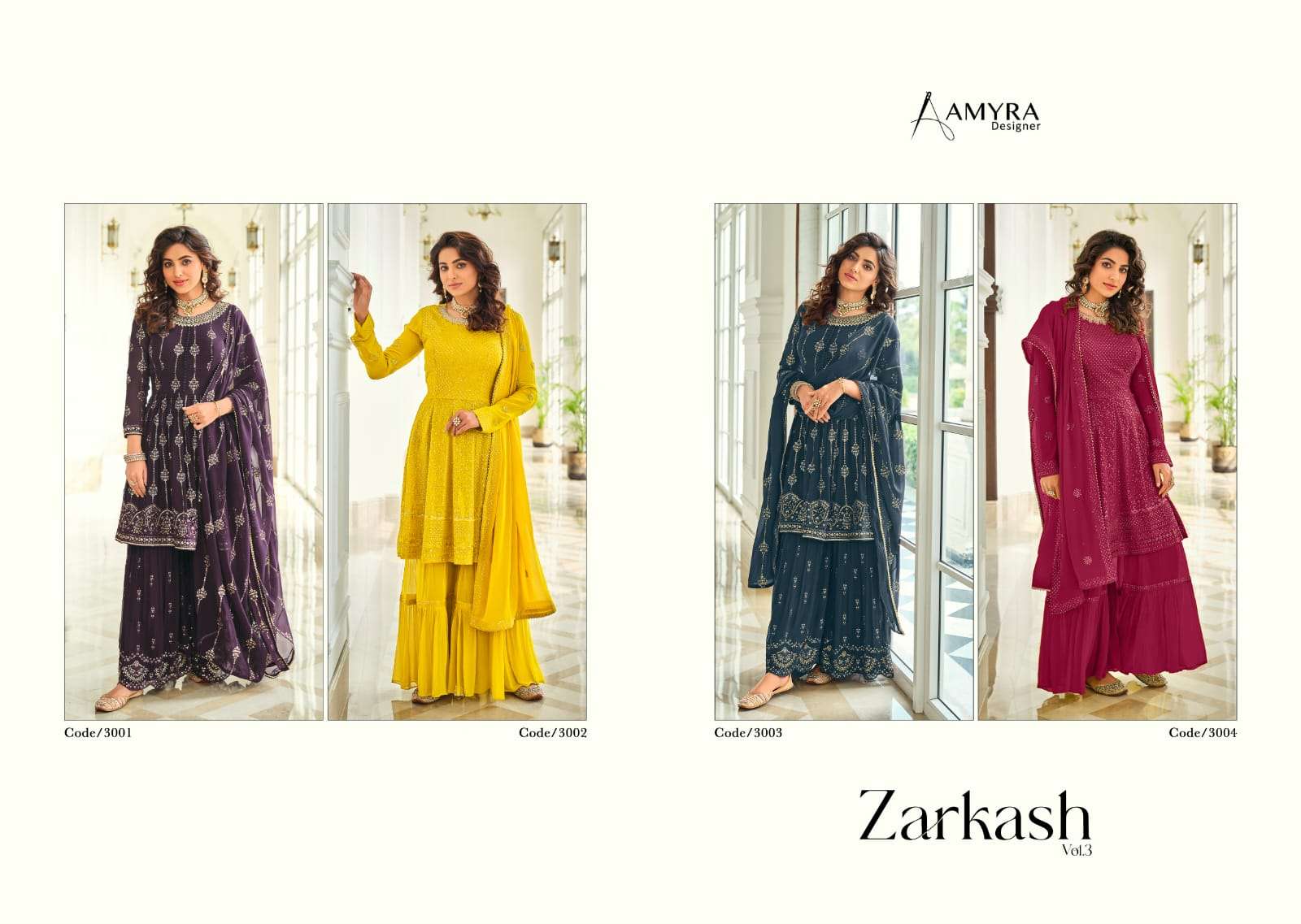 zarkash vol 3 by amyra exclusive readymade peplum garara style suits