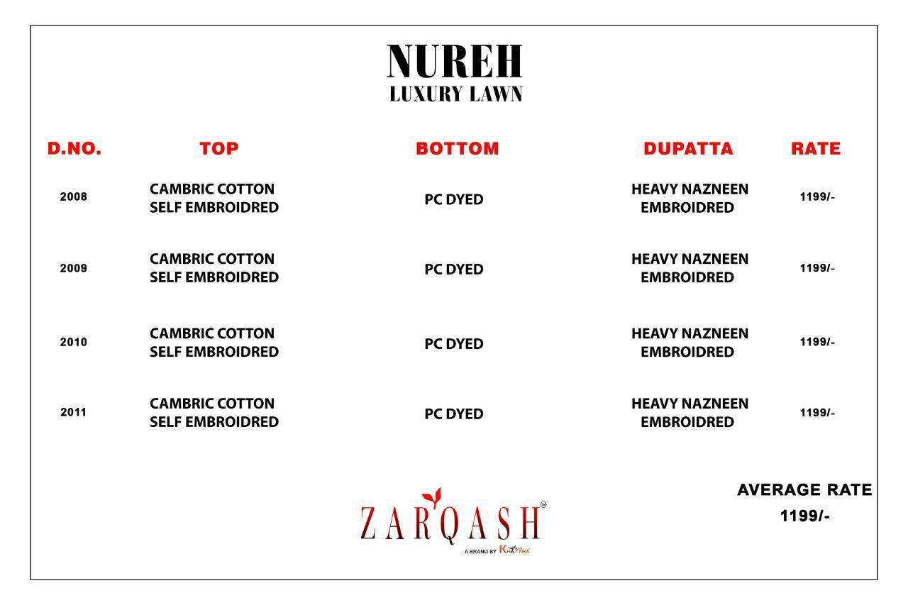 zarqash nureh luxury lawn cotton embroidery pakistani dresses concept new design 2021