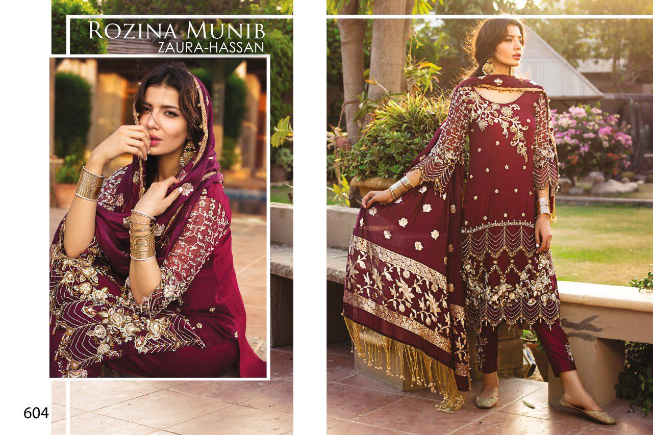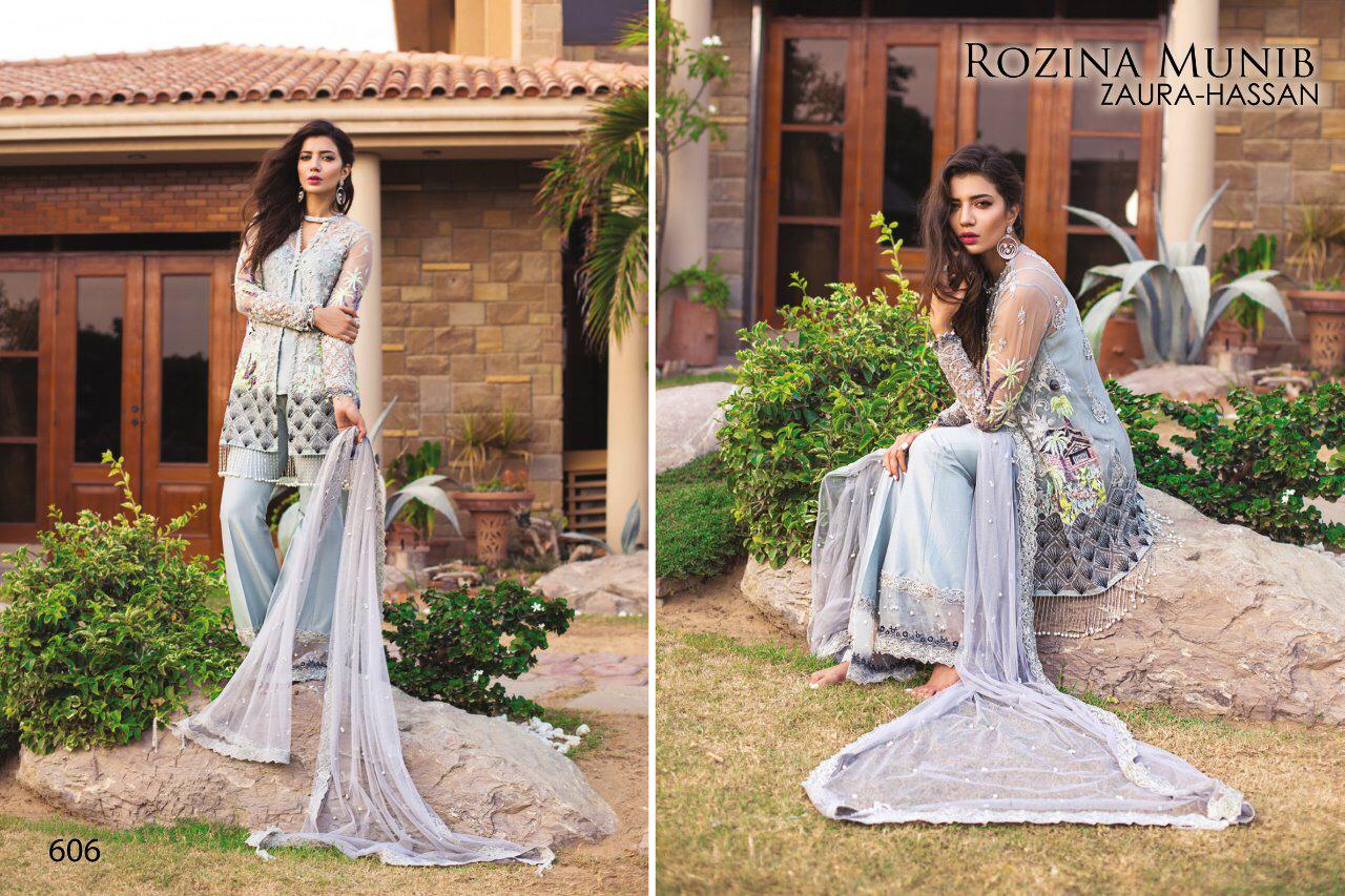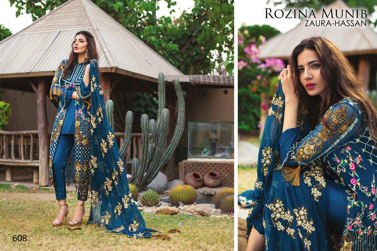 Zaura Hassan Launch Rozina Munib Georgette With Embroidery Pakistani Suit Concept