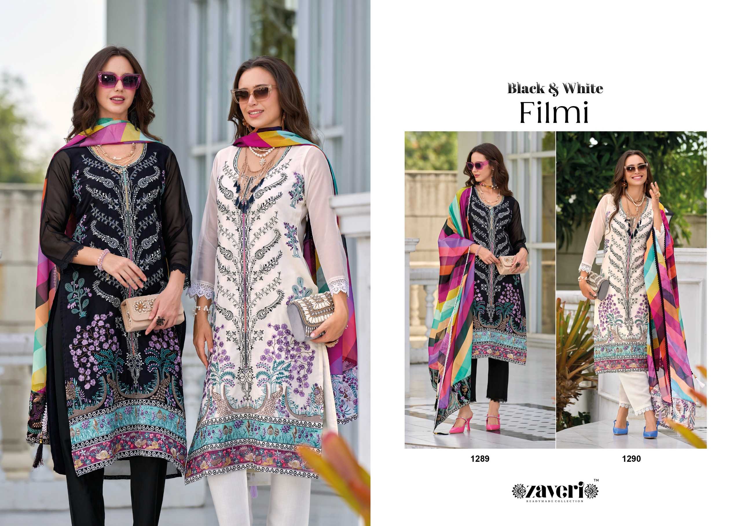 zaveri black white filmi fullstitch pakistani embroidery work salwar kameez