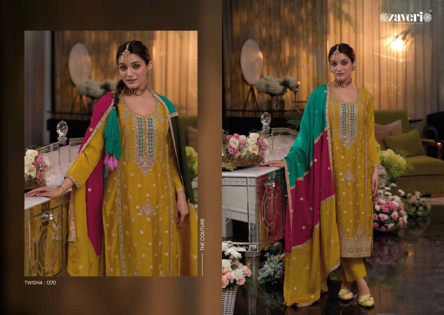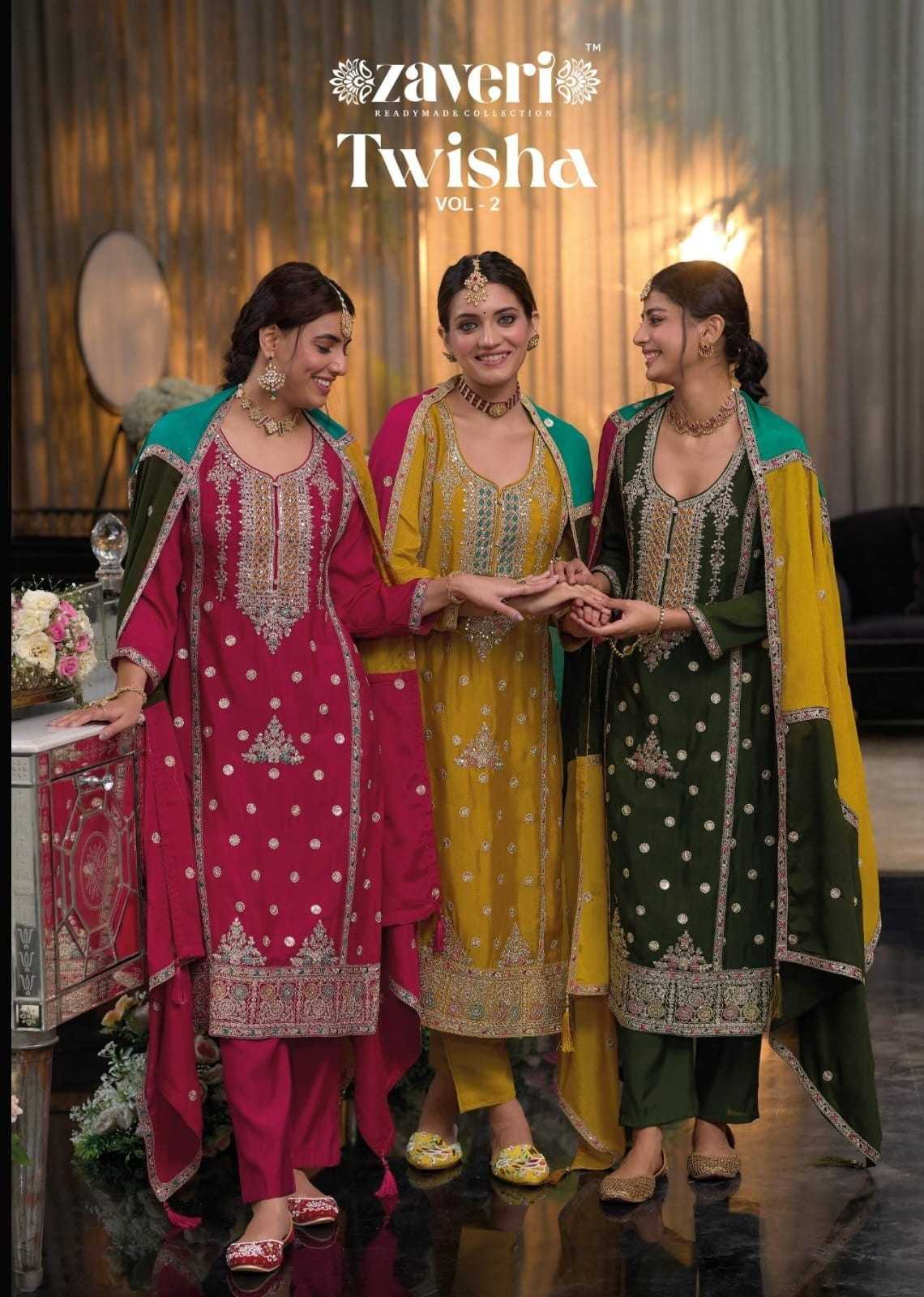 TWISHA VOL-2 Top - hevey Chinon with emboidery work Duppta- hevey Chinon with embroidery Pant - Hevy silk SIZE - M(38)'L (40)' Xl(42)'XXL(44) 3XL (46) BY - ZAVERI WOMAN BEAUTY |