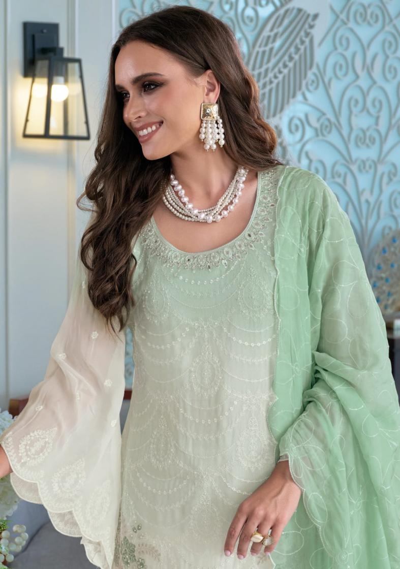 FEMINA-4 Top - Soft organza with fancy embroidery work with moti work & gpo lace Bottom - Heavy silk Duppta - organza WITH EMBROIDERY WORK SIZE - M (38) L (40) XL (42) XXL (44) 3XL (46) RATE - 1699/- BY |
