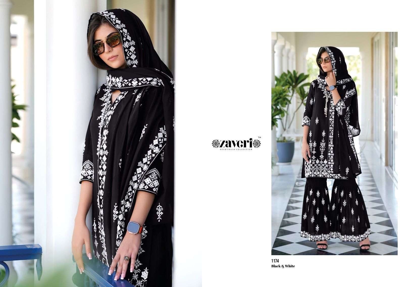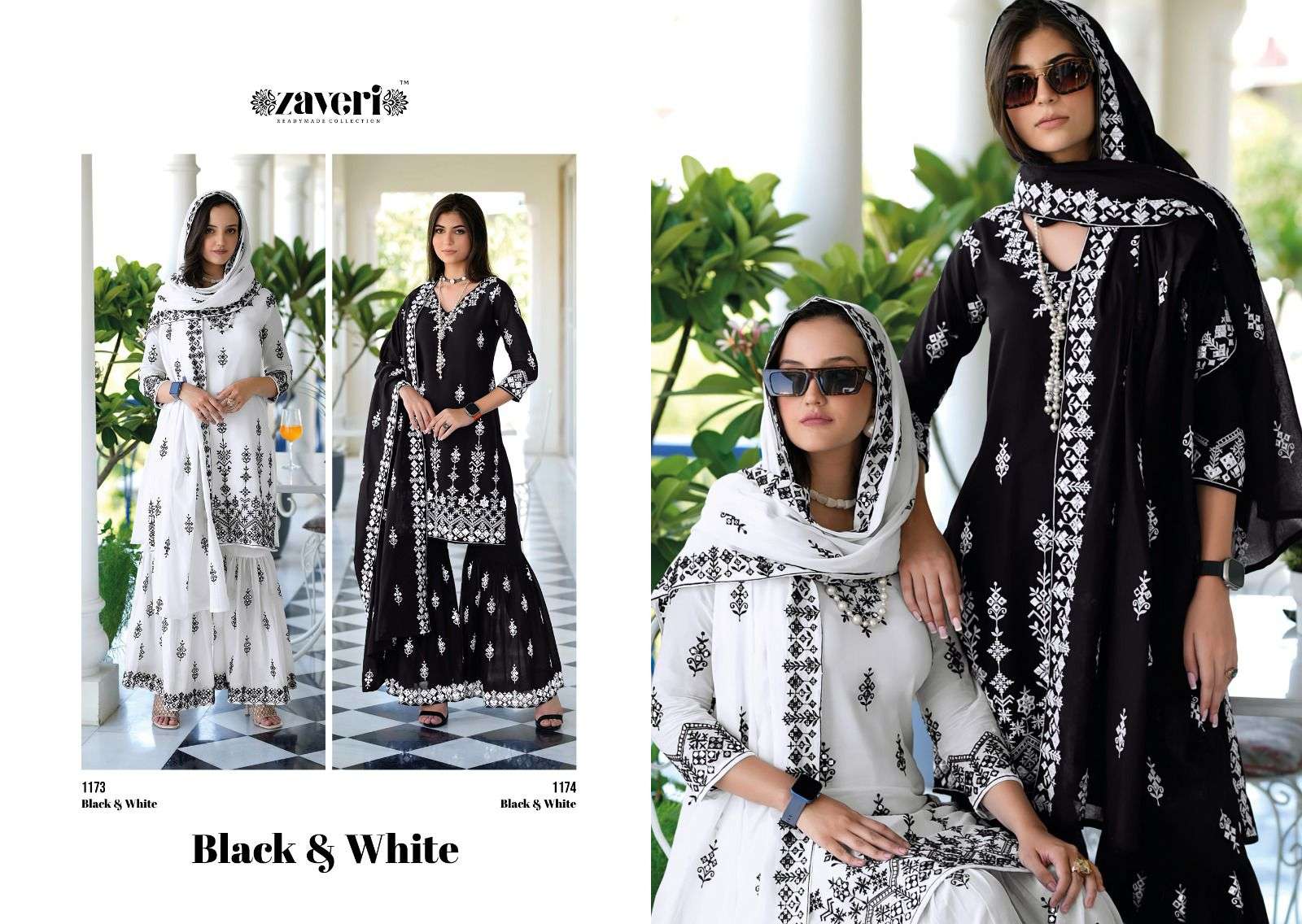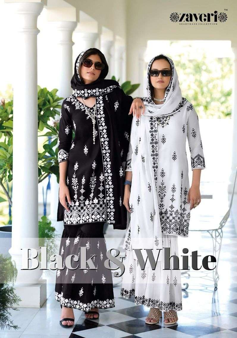 zaveri present black & white heavy embroidery work readymade sharara style salwar kameez