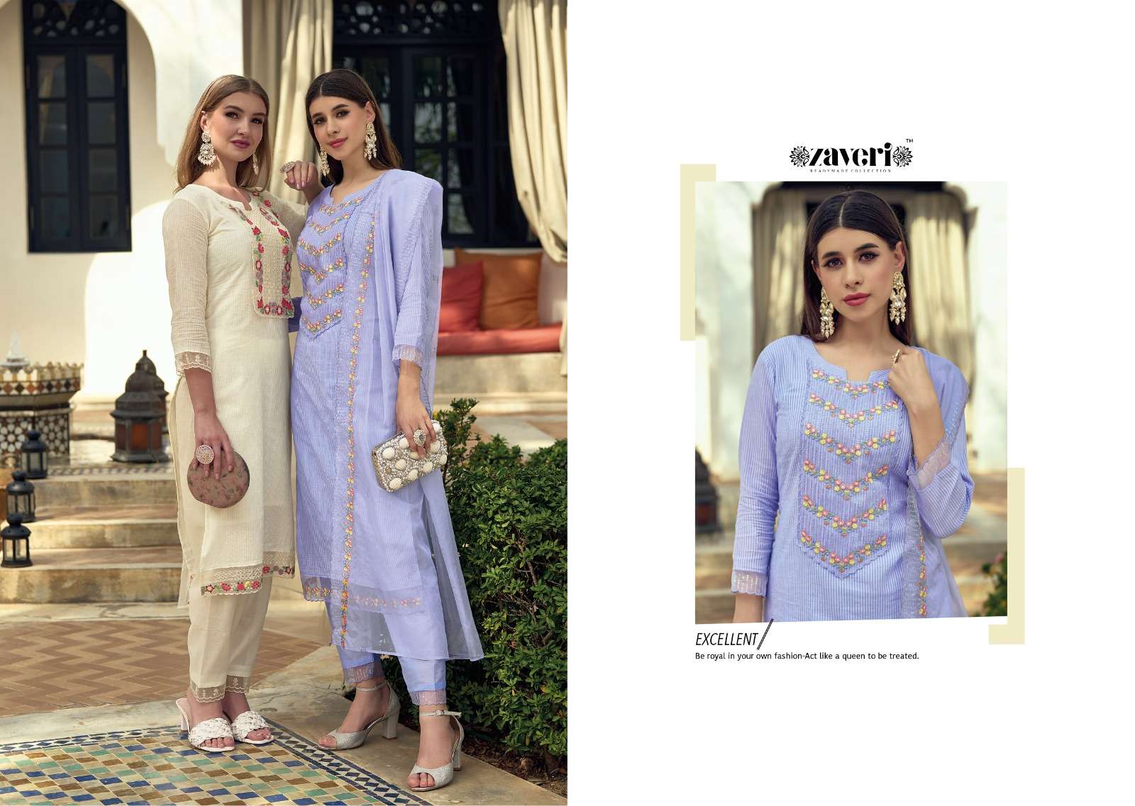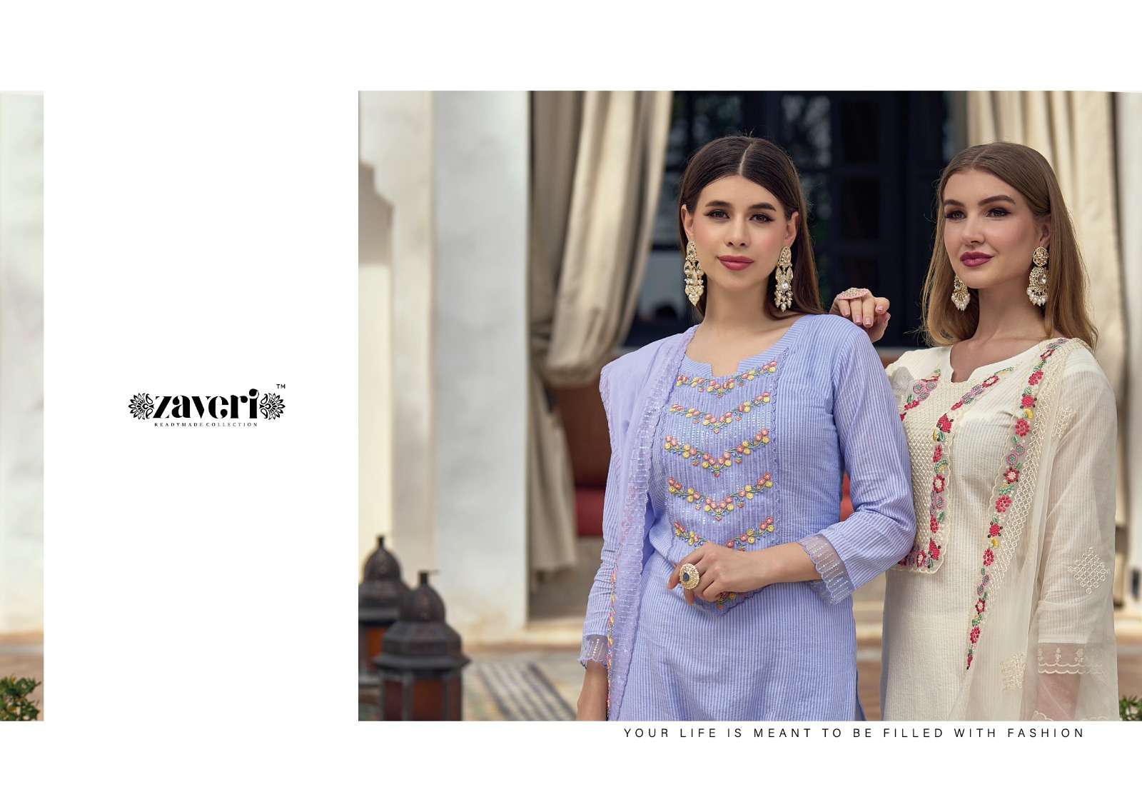 zaveri present nagma 1121-1124 readymade pure cotton kurti and pant with dupatta
