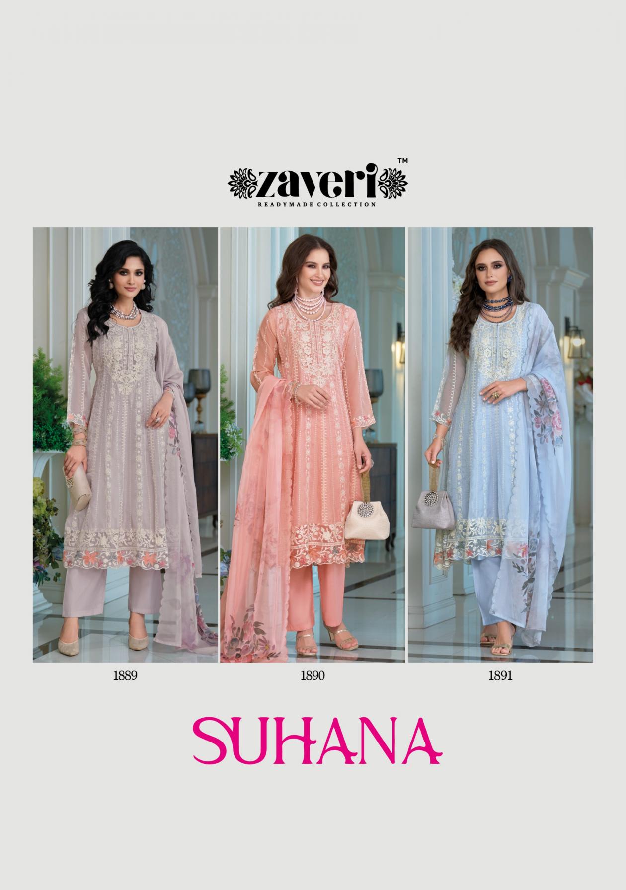 zaveri presents suhana organza readymade exclusive 3pcs dress