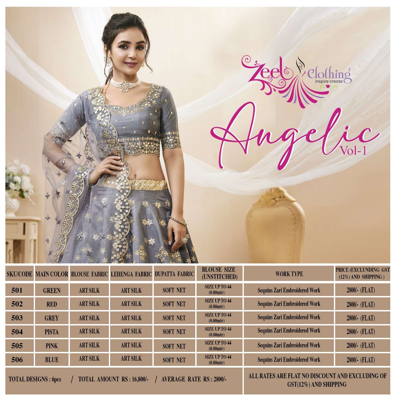 Zeel Clothing presents New Catalog of Lehenga Choli: Angelic Vol-1 SKU Rate Total 6 Colors |