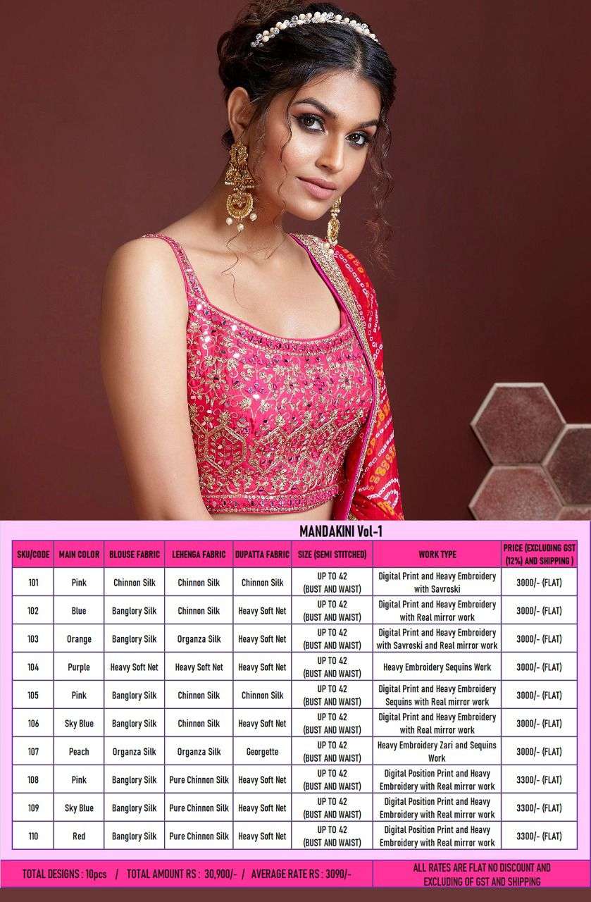 zeel clothing mandakini 101-110 digital print designer semi stitch lehenga choli