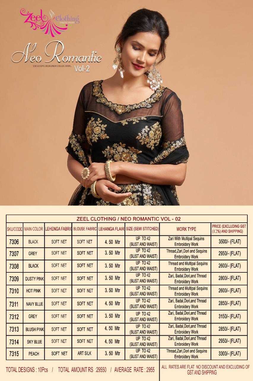 zeel neo romantic vol 2 7306-73015 designer net semi stitch lehenga collection