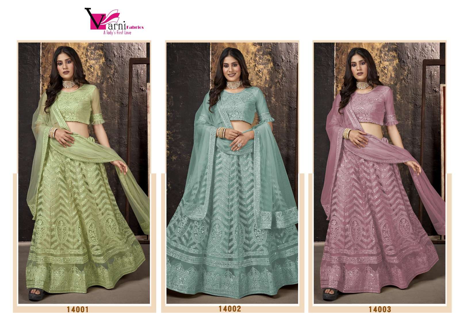 Varni Fabrics New Lehenga Choli catalog Catalog Name - Zeeya-Mannat Series - 14001-14003 3 Beautiful Colors Rate - ₹ 1701/- + GST 12% EXTRA Lehengha Fabric: Net Dupatta Fabric: Net Blouse Fabric - Net with Embroidered work & Sleeves Inner - Micro attached Set type: Lehenga Choli And Dupatta Top Print or Pattern Type: Heavy Multi Embroidered with Sequence Work Bottom Print or Pattern Type: Heavy Multi Embroidered with Sequence Work Attached inner Dupatta Print or Pattern Type: Heavy Multi Embroidered with Sequence Work Four side Lace Sizes: Pre booking started, Book Your Orders Now......... Dispatch from 15/04/23 |