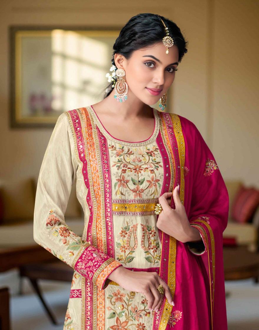 zeeya vol 3 readymade party wear jacquard chinon plazzo kurti with dupatta