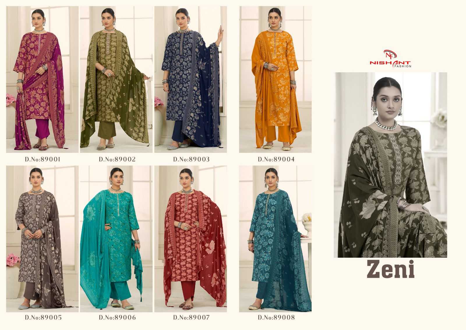 Nishant Fashion__💃💃 CATALOGUE NAME 👇 💃 ZENi💃 🌹FABRIC DETAILS🌹 TOP :- PURE VISCOSE PASHMINA DIGITAL PRINT WITH FOIL & EMBROIDERY WORK DUPATTA :- PURE VISCOSE PASHMINA DIGITAL PRINT With Tussle BOTTOM :- PURE VISCOSE PASHMINA DYEING PCS:-8 RATE :-1025/- + GST |