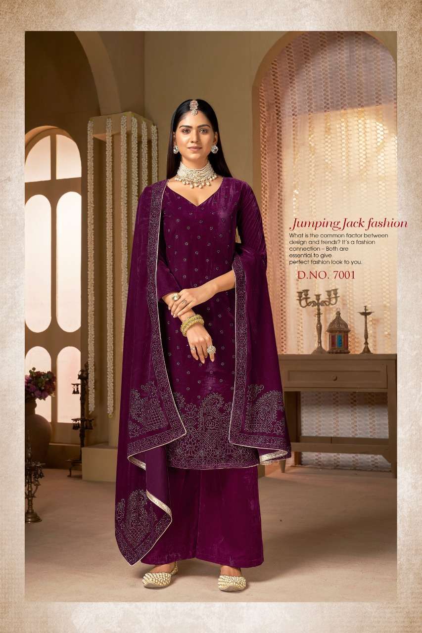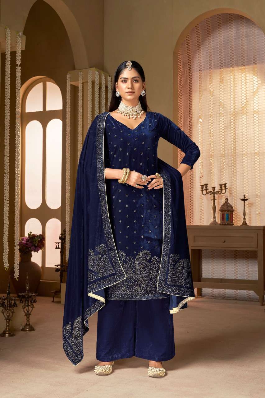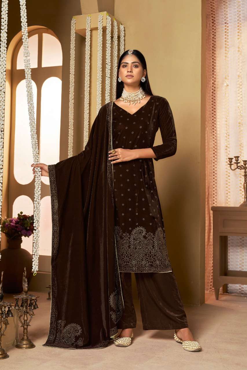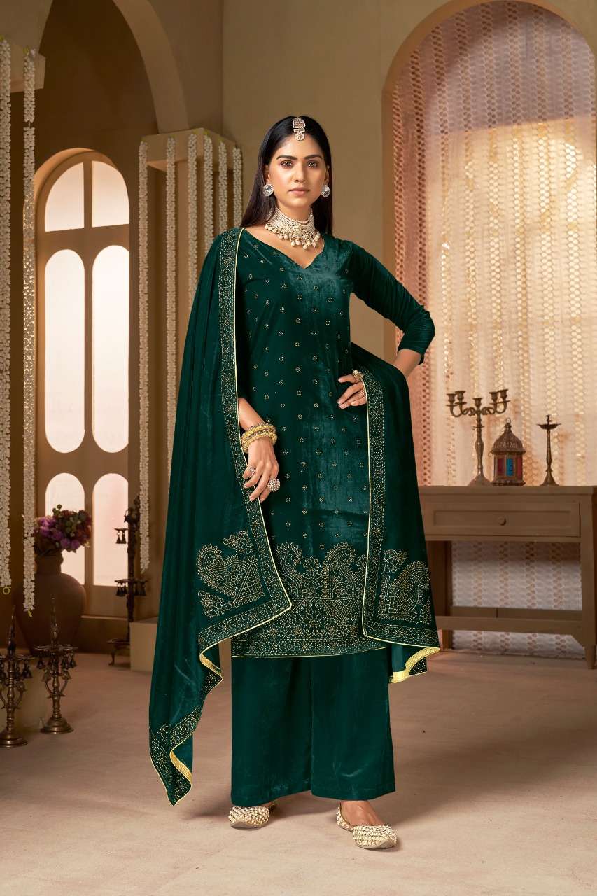 zhalak 7001-7004 by bipson viscose velvet winter wear suit wholesaler