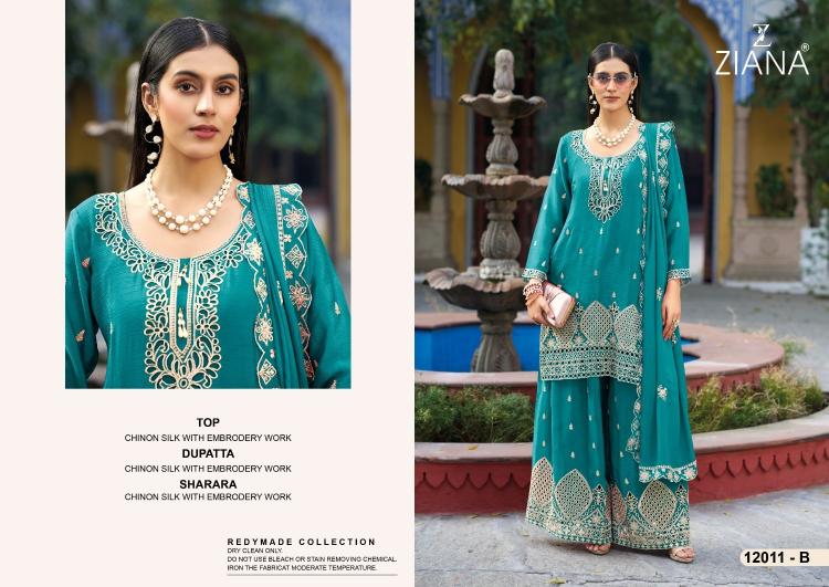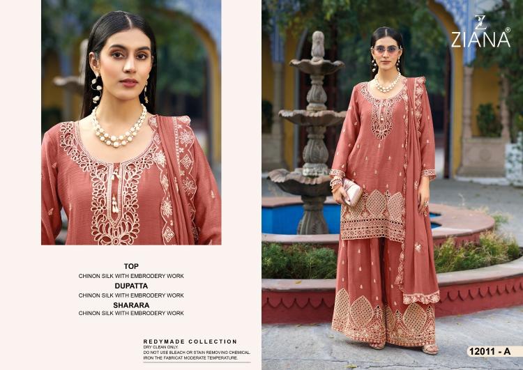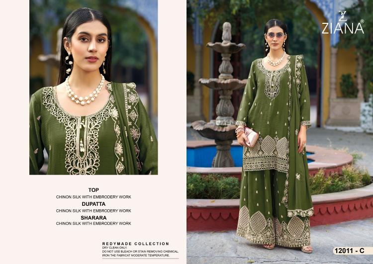 ziana 12011 chinon silk fully stitch chinon silk modern 3pcs dress