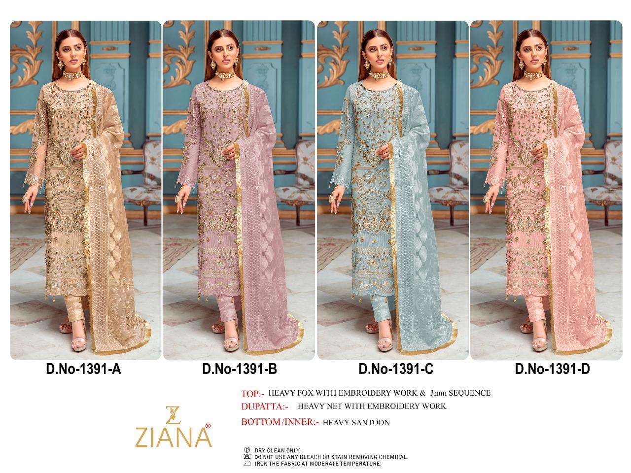 ziana 1391 design colours embroidery dress material at krishna creation surat