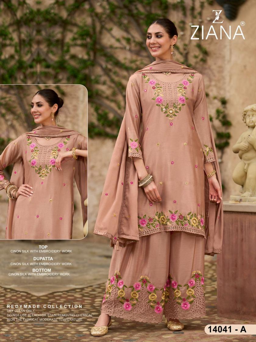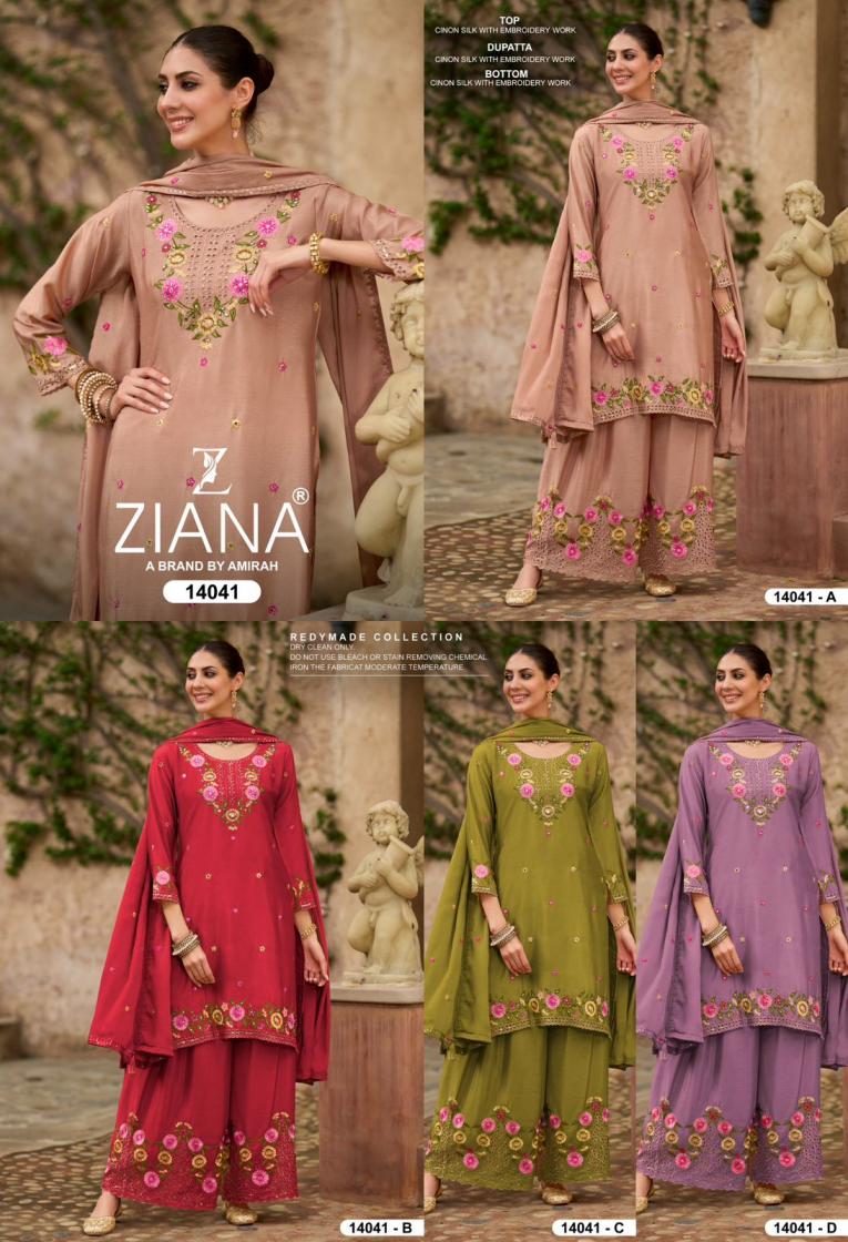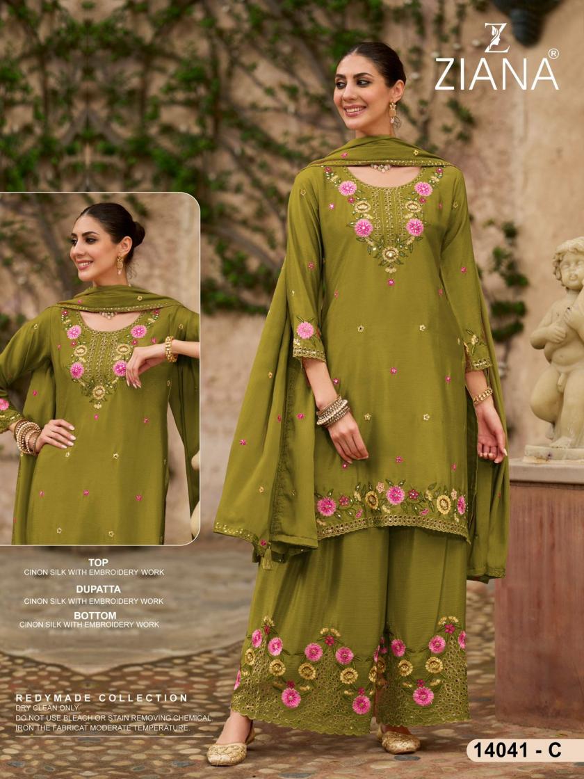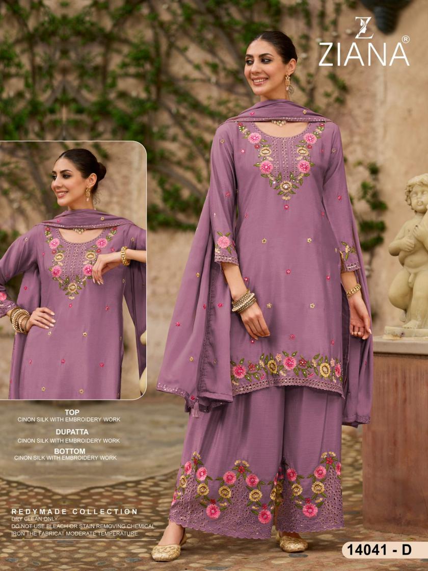 ziana 14041 readymade chinon silk pakistani designer combo plazzo suits