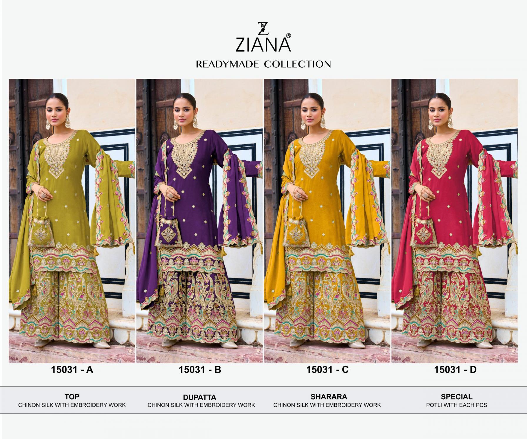 ziana 15031 exclusive chinon silk pakistani readymade plazzo suits
