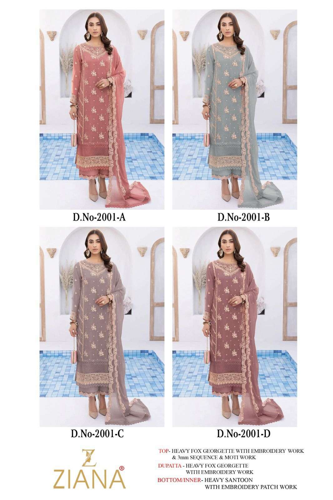 PAKISTANI NEW DESIGNS LAUNCHING ZIANA 2001 ABCD RATE 1150 |