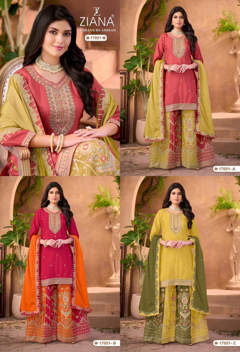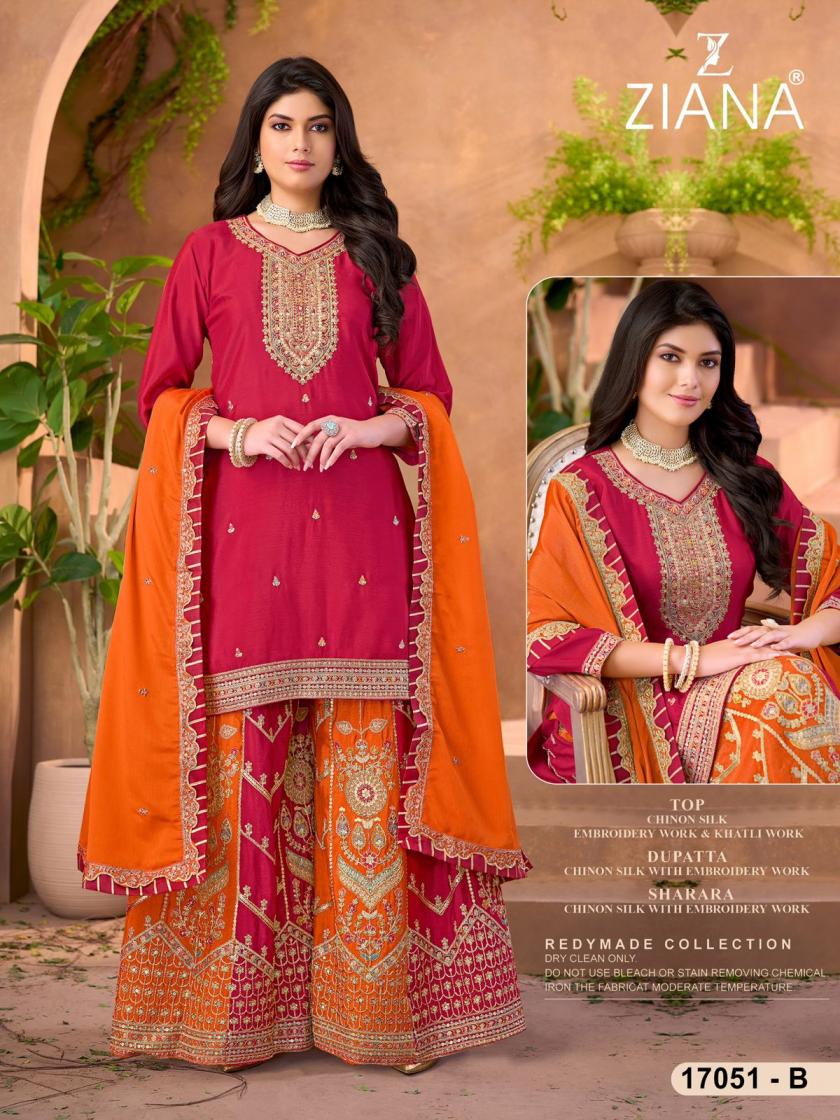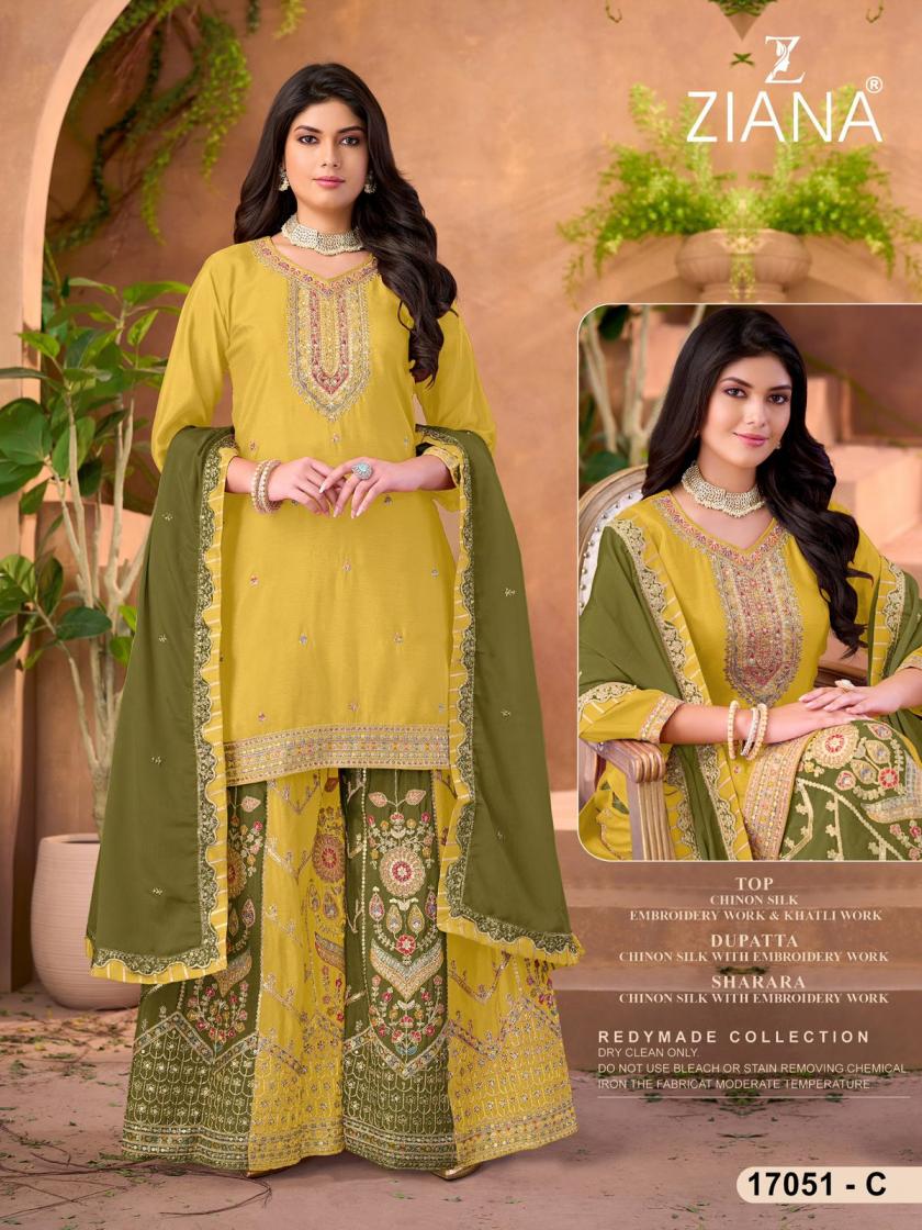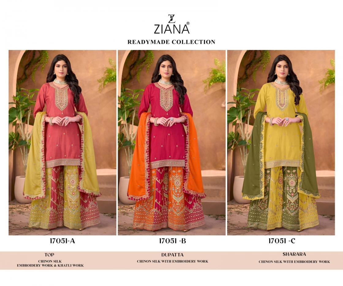 ziana presents 17051 chinon silk readymade pakistani combo sharara suits online
