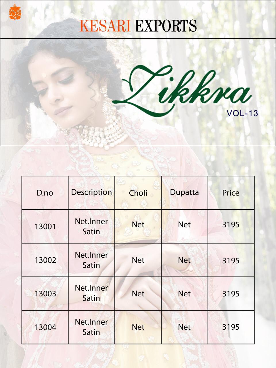 Zikkra Vol 3 By Kesari Exports 13001-13004 Series Net Designer Lehenga Choli