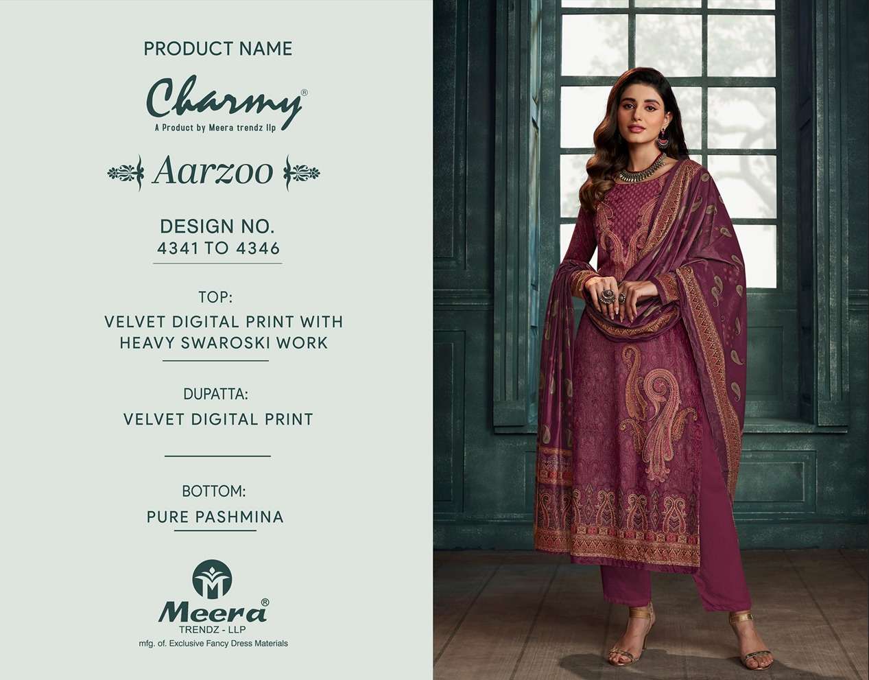 zisa aarzoo by meera charmy velvet winter wear exclusive suits collection