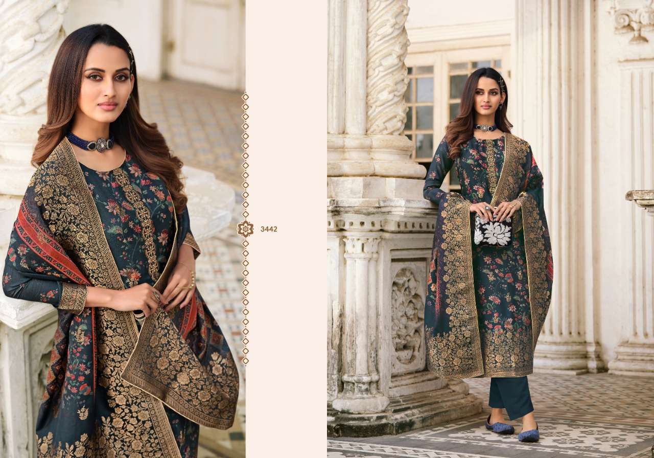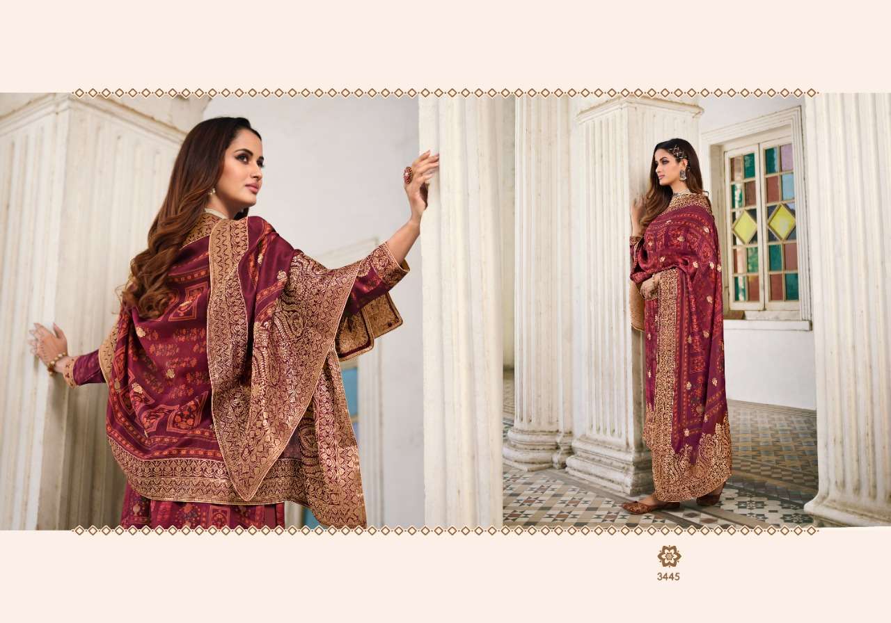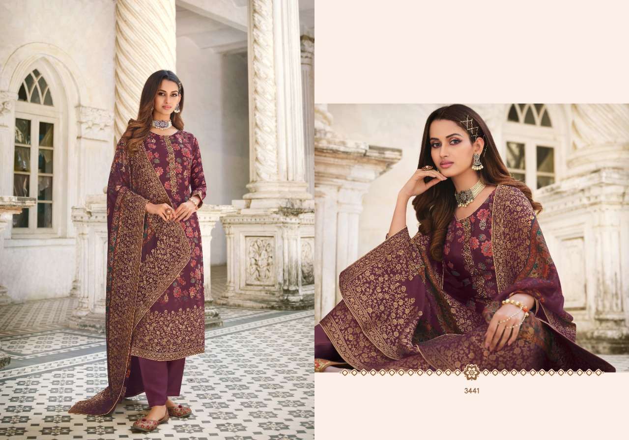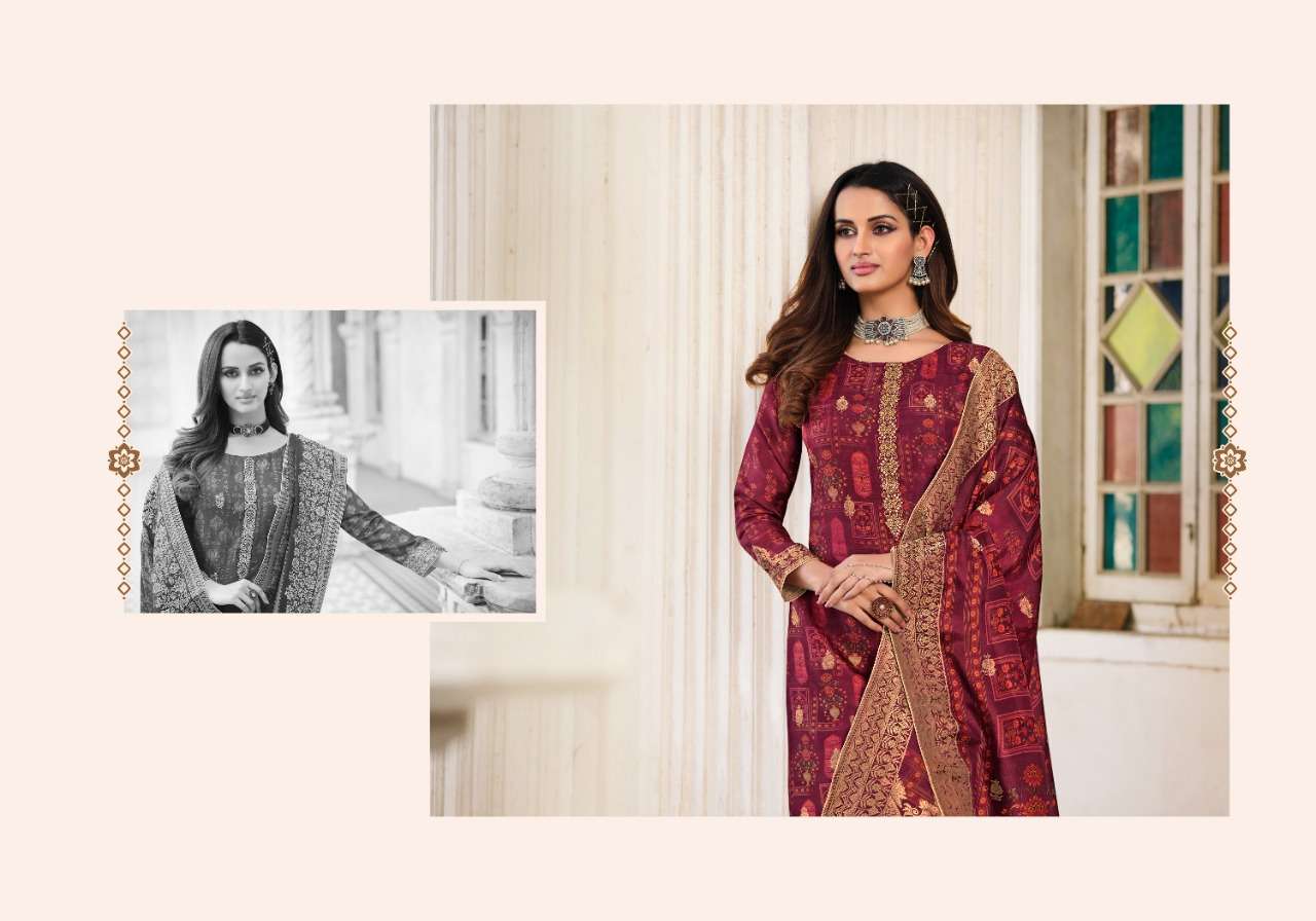 ZISA- Charmy (KADAMBARI-2) Top: Viscose dola jacquard digital print with hand work Dup: Viscose dola jacquard with digital print Bottom: Viscose santoon Rate 1995 |