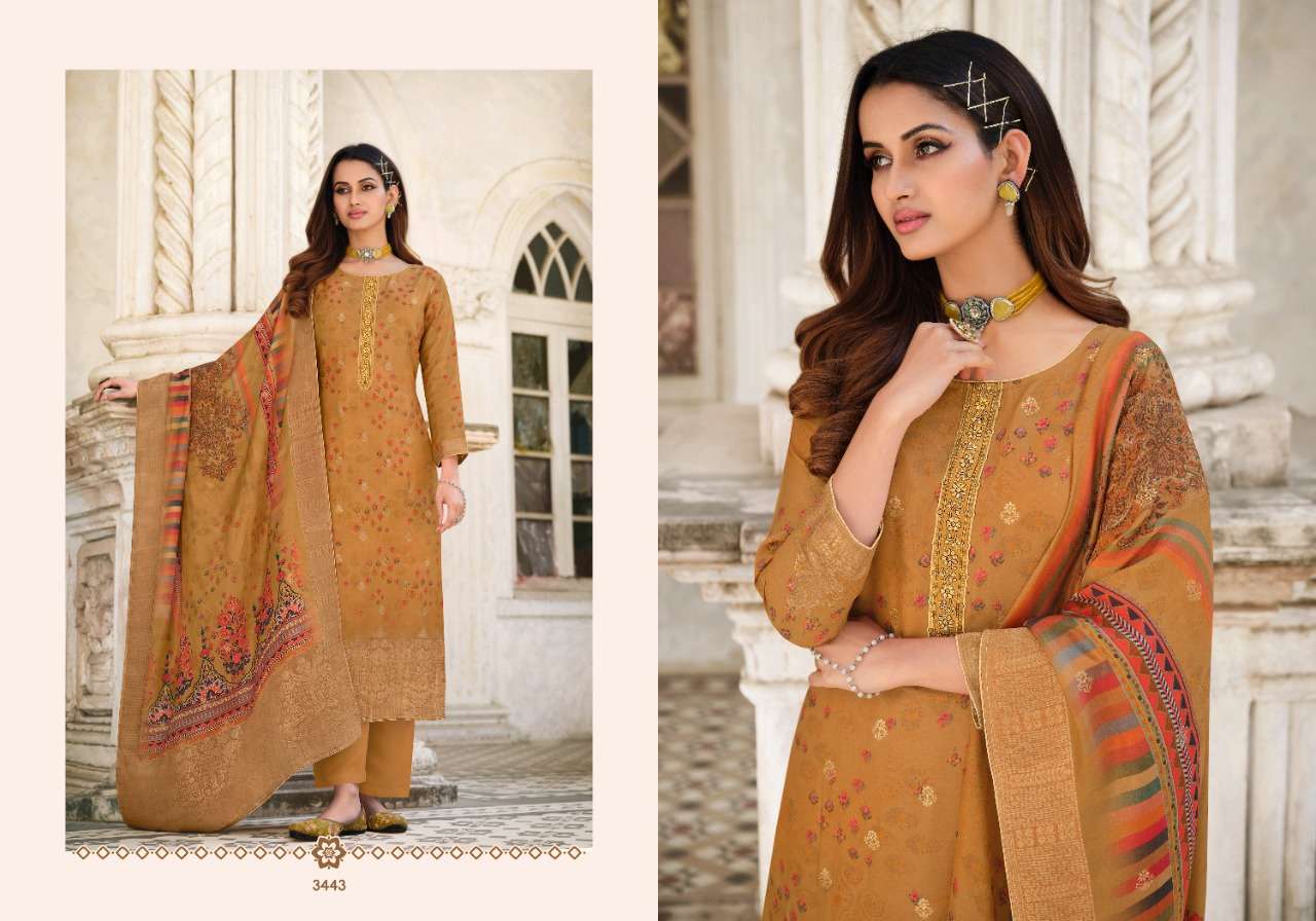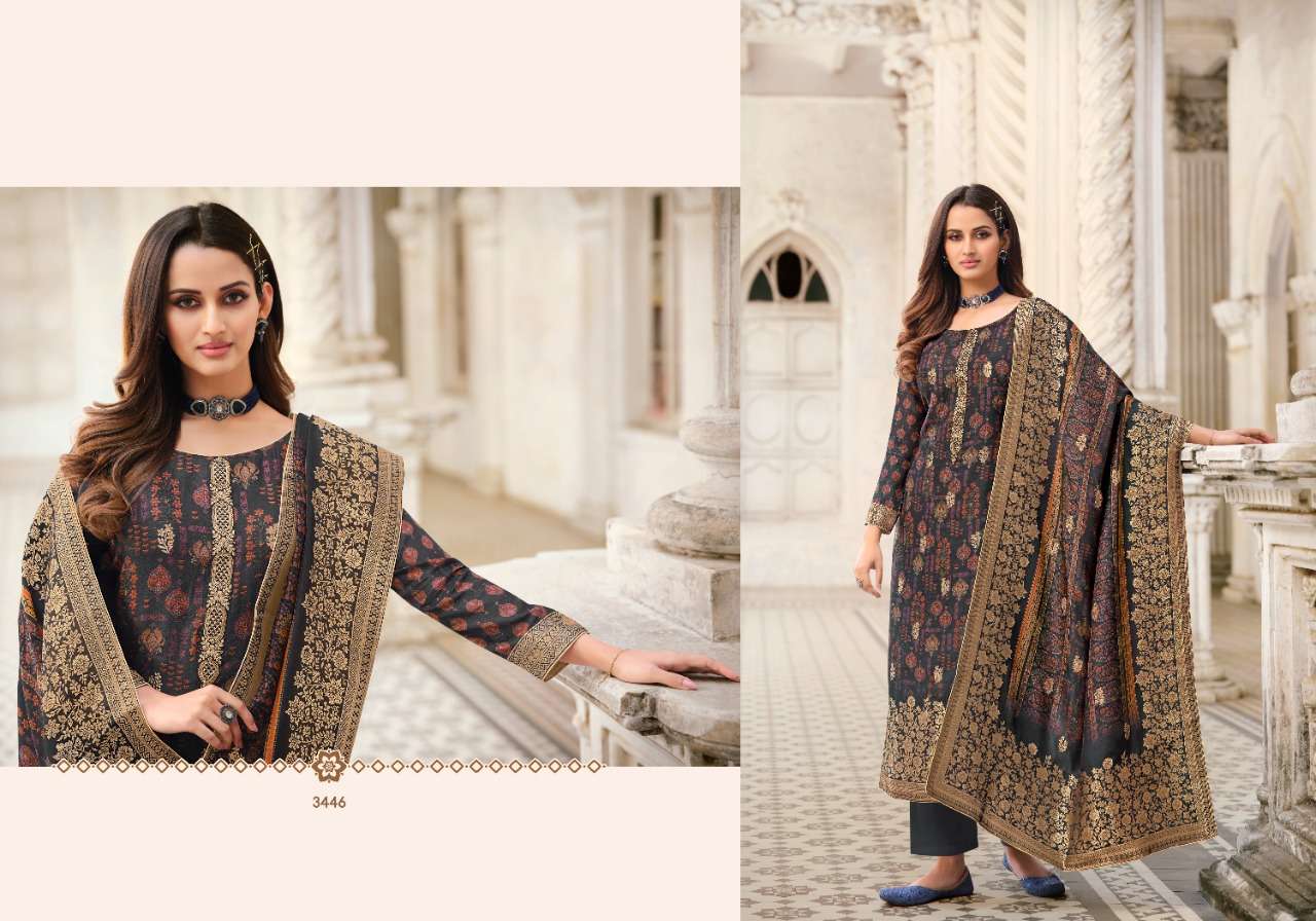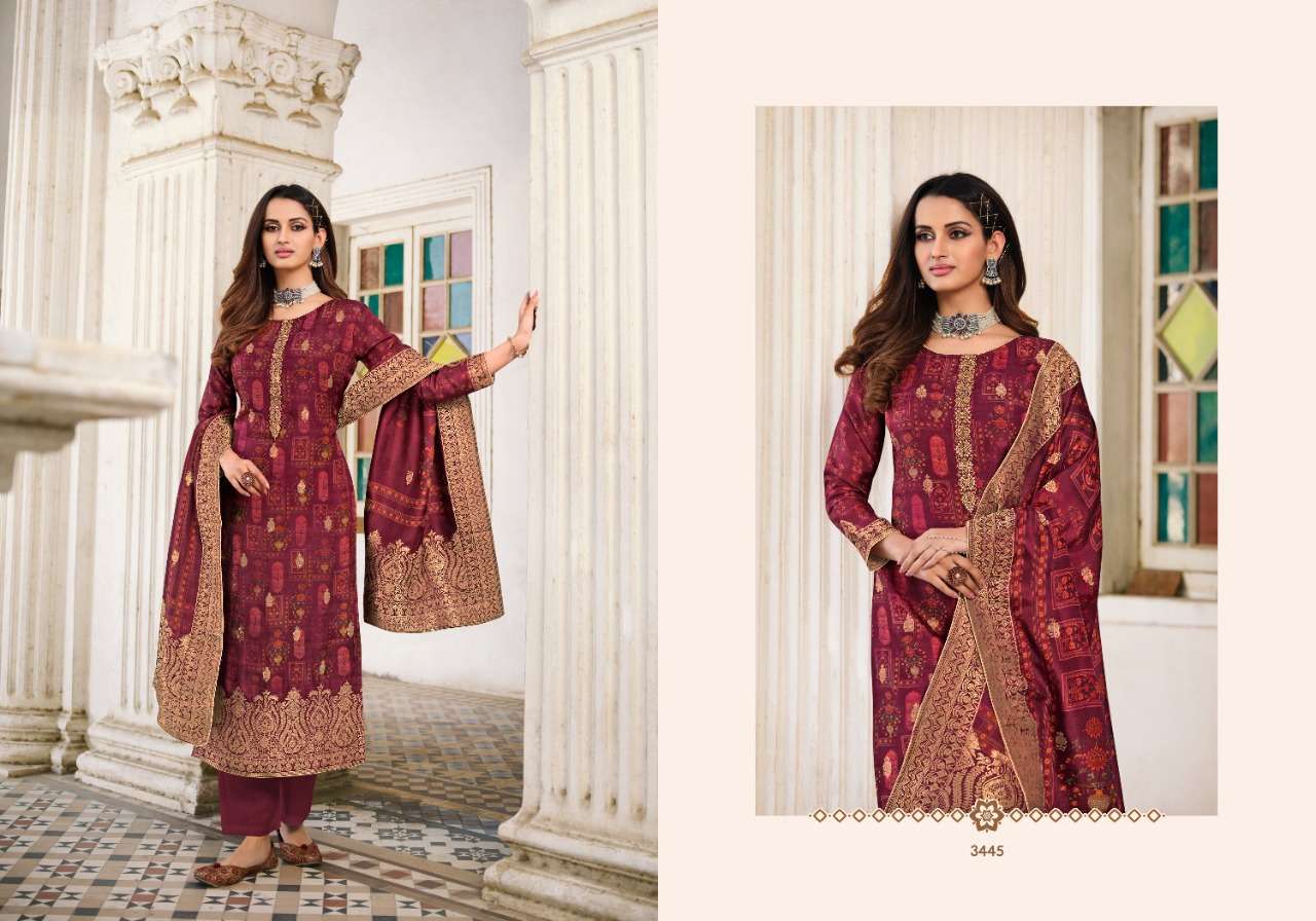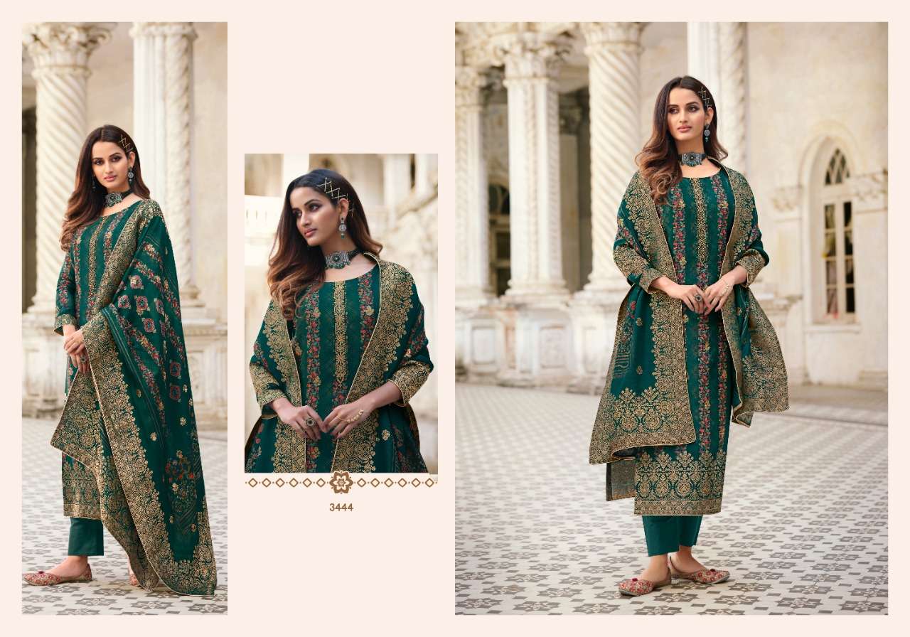 ZISA- Charmy (KADAMBARI-2) Top: Viscose dola jacquard digital print with hand work Dup: Viscose dola jacquard with digital print Bottom: Viscose santoon Rate 1995 |