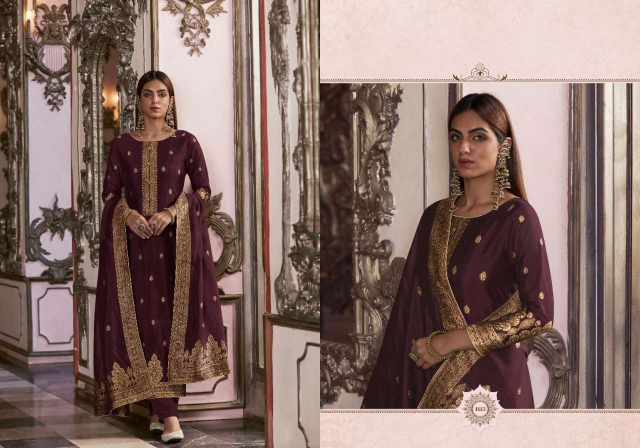 ZISA -Charmy(SILKY FESTIVA) Top : Bamberg Silk jacquard with gota jari Dup: Bamberg silk jacquard with gota jari Bottom: Viscose santoon Rate 1695/ |